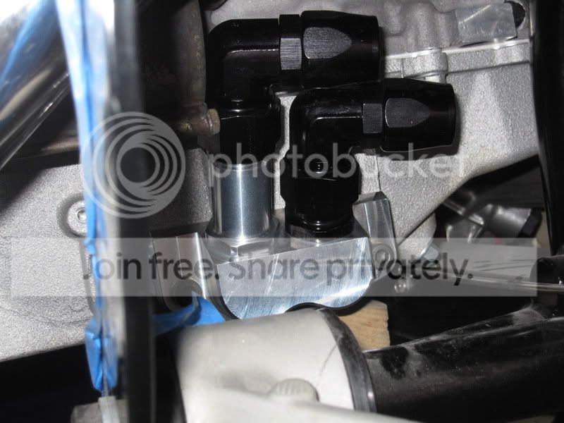 Lately we have been having a few LS7 with the dry sump systems on them.. One thing that was a pain on the oil pan plumbing was fittings that were big & the angles were taking it into the header.. I think this will help out with that.. Made our own oil pan block that sits it on top with a 30 degree angle.. Ordering fittings on Monday so the we can make a -12 fitting extender to take the hoses on a 90 degree..