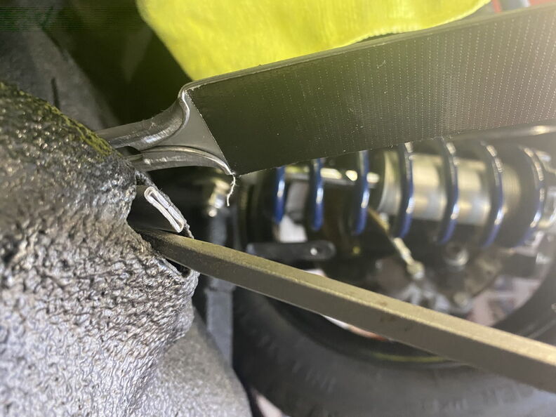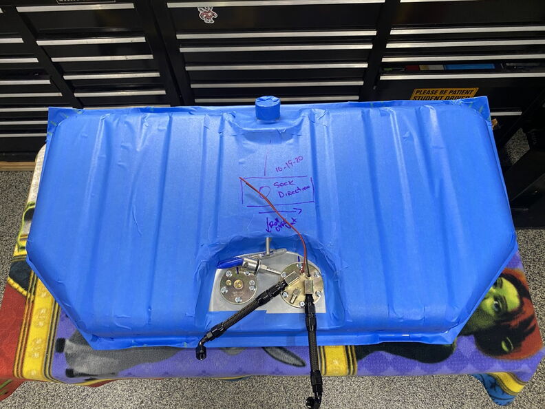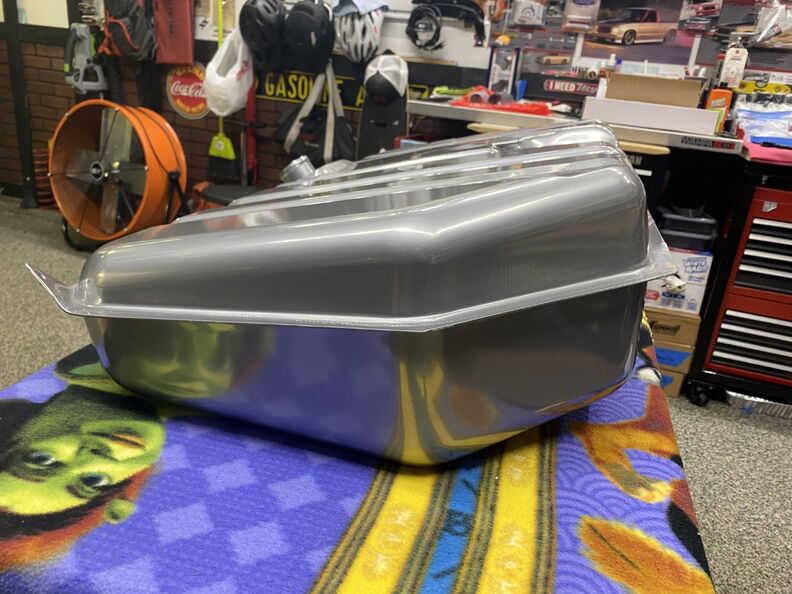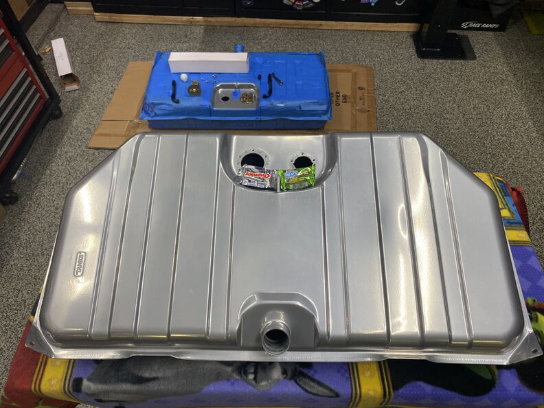 http://www.garagescene.net/_data/i/u...90a221e-me.jpg One of the benefits of the blue tape is I can write notes right on the tank. http://www.garagescene.net/_data/i/u...651ca12-me.jpg http://www.garagescene.net/_data/i/u...05ebe14-me.jpg Talk about a tight fit. I needed to open these up just a little bit so I could slide them in place. http://www.garagescene.net/_data/i/u...f9c0a33-me.jpg So this is how I tightened them back up. Anyone do this a different way as I would love to know if there is a better way. http://www.garagescene.net/_data/i/u...90eaeb1-me.jpg I put tape on the straps temporarily and once the tank is in for the final time I will install the rubber strips. http://www.garagescene.net/_data/i/u...e18b102-me.jpg Had to call the wife out to help me put the tank in for the first time. Once the straps are bent I can easily remove and install the tank by myself. http://www.garagescene.net/_data/i/u...083adff-me.jpg Tank is in and it looks so much better. http://www.garagescene.net/_data/i/u...7950a1b-me.jpg I had to shorten the lines just a little bit and I was even smart enough to lay the wiring on the top of the tank. This will allow me to terminate the wire at the sending unit and the fuel pump. I will also need to run ground wire which I forgot to install. http://www.garagescene.net/_data/i/u...f2f2cd9-me.jpg I quickly installed the tailpipes just to see how much of a difference the new tank would make. http://www.garagescene.net/_data/i/u...efc3e7f-me.jpg http://www.garagescene.net/_data/i/u...e2e9592-me.jpg http://www.garagescene.net/_data/i/u...ae77099-me.jpg http://www.garagescene.net/_data/i/u...3fe49b1-me.jpg http://www.garagescene.net/_data/i/u...c9b0cf9-me.jpg |