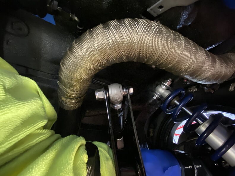 So Mike called me to ask what I was doing and I told him I was about to install the headers in the car and that I would call him back in 5 minutes. Every step of the way on this build I wanted to make a car that was easy to work on and fun to drive. Since I a very content with 468hp I didn't see a need for long tube headers and a 3" exhaust. So we took a set of Edelbrock shorty headers and the guys at High Speed Welding made a down tube to connect to the exhaust.