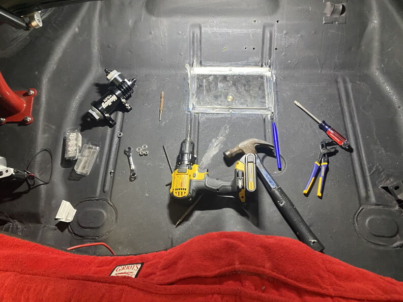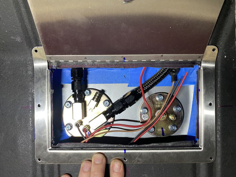 http://www.garagescene.net/_data/i/u...c4dd14c-me.jpg Don't hate me as I went to Harbor Freight and bout a disposable panels saw. http://www.garagescene.net/_data/i/u...8ee64b0-me.jpg and here is why I love the blue tape as all of my measurements are right there. http://www.garagescene.net/_data/i/u...cd9c770-me.jpg http://www.garagescene.net/_data/i/u...37ea180-me.jpg In order for the panel to follow the shape of the floor I slid the panel up into the curve and slowly pushed it into shape. http://www.garagescene.net/_data/i/u...2f3d9da-me.jpg Tanks is back out. http://www.garagescene.net/_data/i/u...d0ab26e-me.jpg You know if it wasn't my car I am sure it wouldn't bother me to cut a giant hole in the trunk floor. http://www.garagescene.net/_data/i/u...5540805-me.jpg http://www.garagescene.net/_data/i/u...2aa580d-me.jpg http://www.garagescene.net/_data/i/u...d568457-me.jpg Houston we have a hole. http://www.garagescene.net/_data/i/u...518ef42-me.jpg Next step it to make the floor opening match the access door. http://www.garagescene.net/_data/i/u...c714089-me.jpg http://www.garagescene.net/_data/i/u...681360a-me.jpg I installed the tank back in to make sure I actually cut the hole in the correct place. http://www.garagescene.net/_data/i/u...62a3144-me.jpg Tanks is back in and I made sure I installed the lines. I wanted to make sure I could get to all of the fittings. http://www.garagescene.net/_data/i/u...62a3144-me.jpg Once I trim up all of the excess I will be able to service the pump, float & fittings. http://www.garagescene.net/_data/i/u...5d5e2db-me.jpg Holy crud am I making a mess. http://www.garagescene.net/_data/i/u...b11d591-me.jpg http://www.garagescene.net/_data/i/u...2b57293-me.jpg http://www.garagescene.net/_data/i/u...fa2bfc5-me.jpg |
