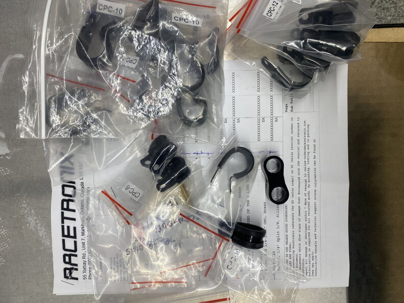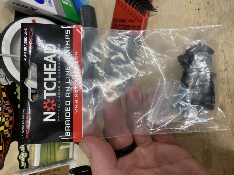 Racetronix sell black anodized adel clamps and I had to have them even though now one will every notice them. http://www.garagescene.net/_data/i/u...b2f6e28-me.jpg They also sell a very nice aluminum -6 line clamps. http://www.garagescene.net/_data/i/u...dfc7439-me.jpg I also picked up some Knotchead -6 soft line clamps. http://www.garagescene.net/_data/i/u...28a61e1-me.jpg http://www.garagescene.net/_data/i/u...8d5e3ac-me.jpg http://www.garagescene.net/_data/i/u...930dc72-me.jpg |