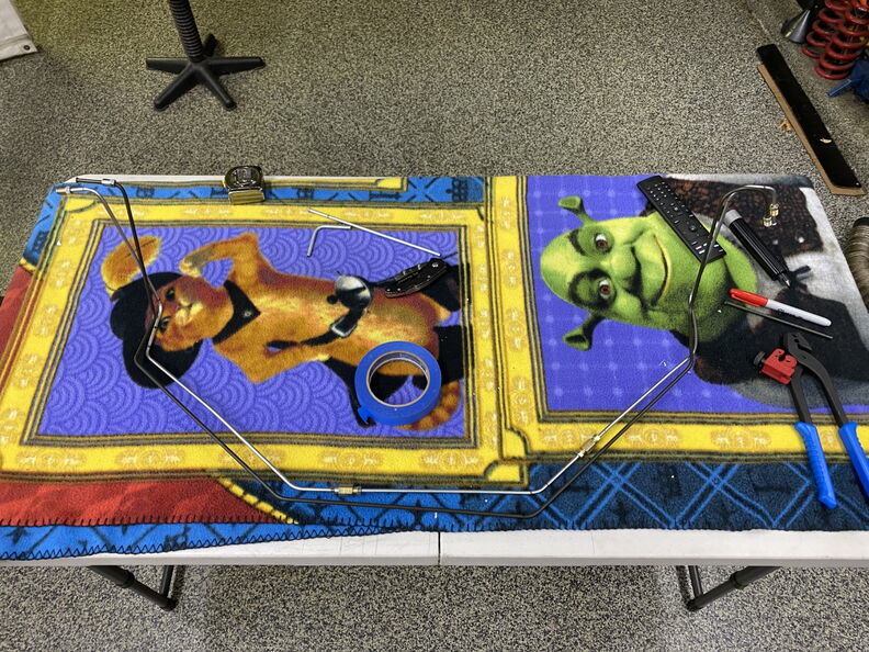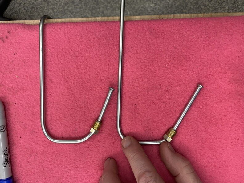 was going to make the mock up line in the 3 pieces and then come back and attempt to make the line in one piece. So out comes the trusty metal coat hangers and I made my first pattern. http://www.garagescene.net/_data/i/u...af7b423-me.jpg Then the next http://www.garagescene.net/_data/i/u...f5db7b8-me.jpg and finally I made the complete pattern. http://www.garagescene.net/_data/i/u...07f9153-me.jpg Here goes nothing ! http://www.garagescene.net/_data/i/u...cacd916-me.jpg http://www.garagescene.net/_data/i/u...a815fb2-me.jpg http://www.garagescene.net/_data/i/u...44690e1-me.jpg Hard to believe my first attempt went so well. http://www.garagescene.net/_data/i/u...615a2ec-me.jpg The final bends on the drivers side went well however I was way off on the passenger side. http://www.garagescene.net/_data/i/u...3953e19-me.jpg Opps - oh well I will give it another shot in a couple days. http://www.garagescene.net/_data/i/u...ee1710e-me.jpg |