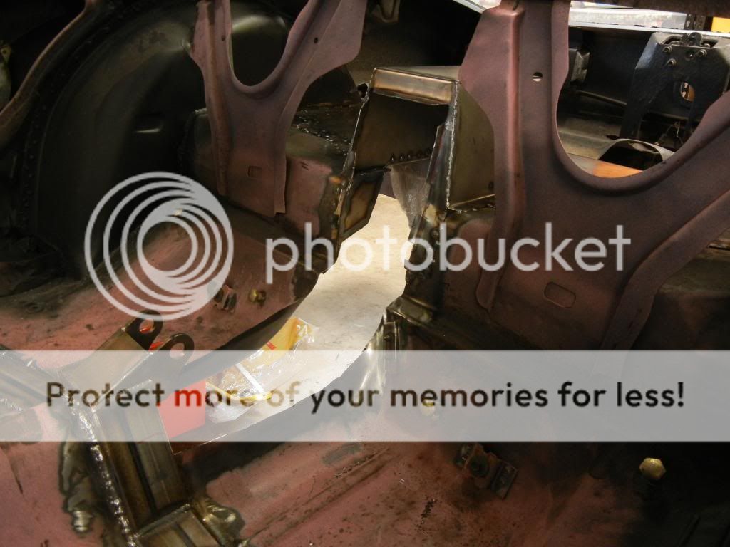 So the last substantive fabrication/welding task was to finish the install of the Lateral Dynamics 3-Link. I had the front x-member in before work stalled. http://i490.photobucket.com/albums/r...ps55d4bd8d.jpg The remaining bits were installing the rear x-member, closing out the torque box, and installing the close-out panels/boxes to make room for the upper trailing arm. Here's the rear x-member installed. I had it powder coated in a light gray. I hated to cover up Matt's welds, but the guy at the PC shop said a clear PC would discolor and look really lousy. http://i490.photobucket.com/albums/r...ps95903836.jpg For some reason, I really enjoy doing those rosette welds. They're just kinda fun. As you can see, I had to put a doubler on the frame to take up the gap between the length of the x-member and the width of the frame. James had to pound his frame rails out to make his fit. Yeah late-60's manufacturing inconsistencies! Here's the torque box closeouts. I hadn't finished grinding the welds down when I snapped the pic. Kathy was calling me to dinner. http://i490.photobucket.com/albums/r...ps96064539.jpg Then I roughed in the trunk pan closeout and the doghouse that houses the upper link on the rear end housing. http://i490.photobucket.com/albums/r...psd1073ff6.jpg http://i490.photobucket.com/albums/r...ps9ffbae7e.jpg http://i490.photobucket.com/albums/r...psff6c7ed8.jpg http://i490.photobucket.com/albums/r...ps7594a362.jpg http://i490.photobucket.com/albums/r...pse3a7445c.jpg http://i490.photobucket.com/albums/r...ps327d2017.jpg |