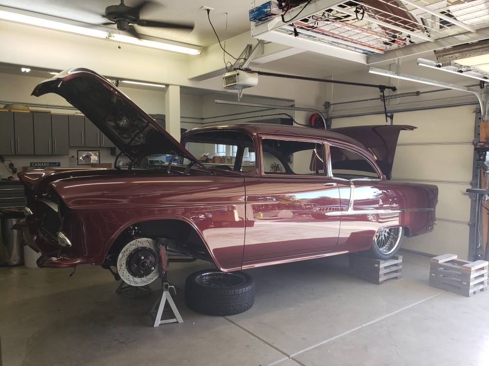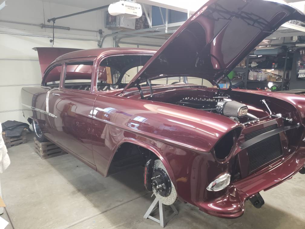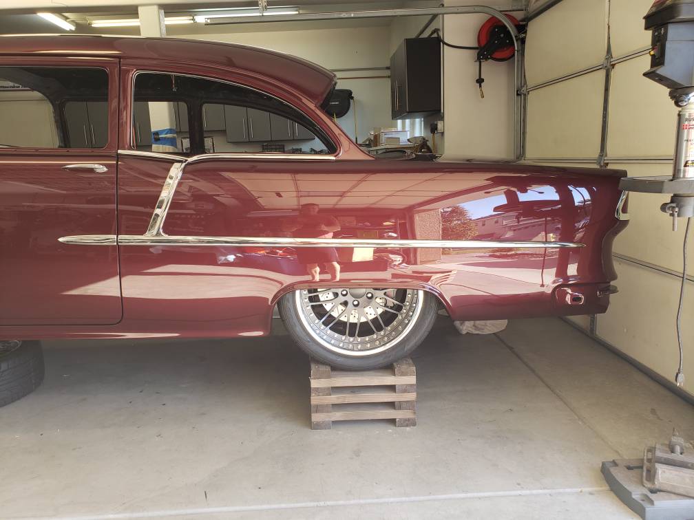 Well, this past Sunday was a monumental day for me - and the family. Took the 55 on it's maiden voyage. With a fair amount of idle time, due to my job and raising kids - this car has been in the works for 20 years come February. To say that I am overwhelmed with emotions seeing the light at the end of the tunnel is an understatement. Very please with the outcome. I still have a few minor things to do inside like stereo wires and cables to run - but aside from that it is ready for the interior shop - which it goes off to this month.
