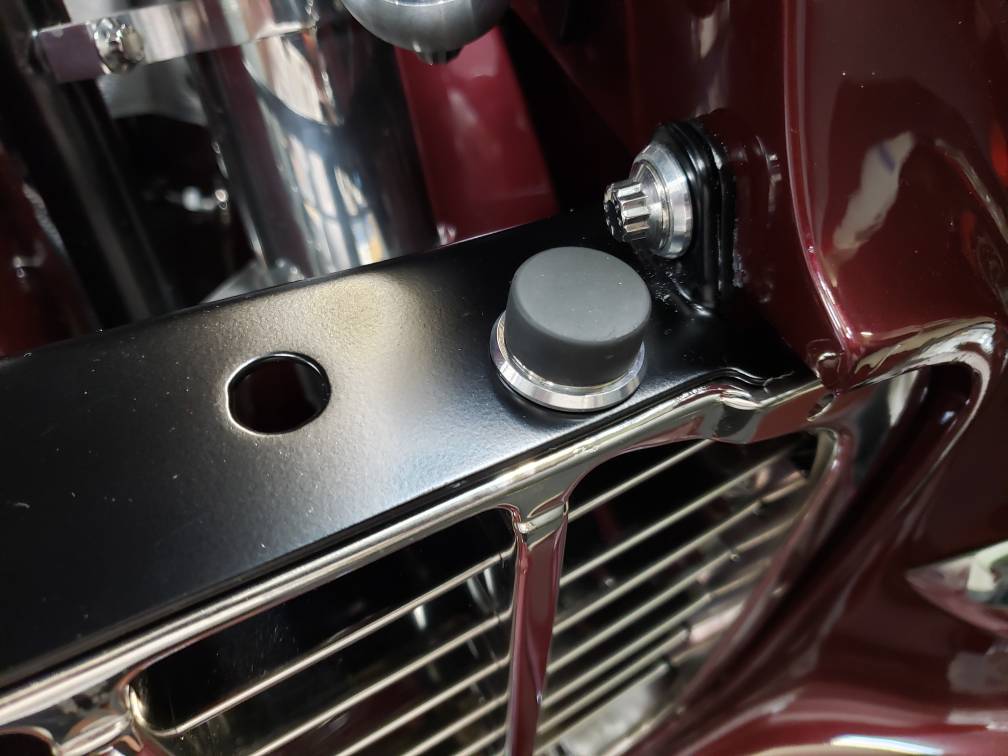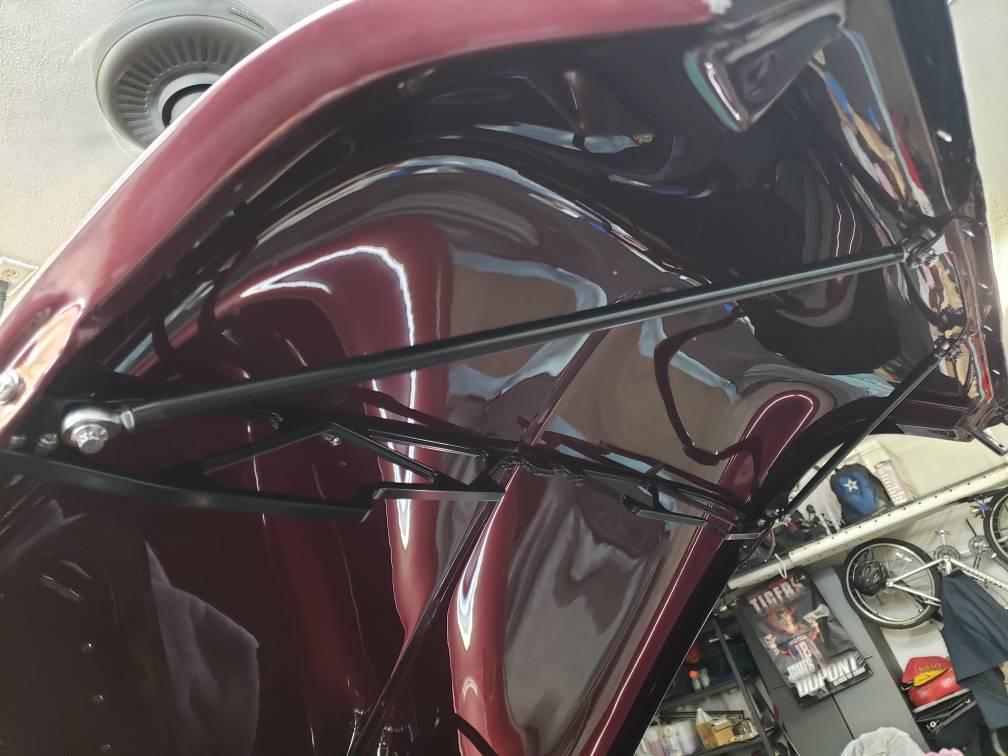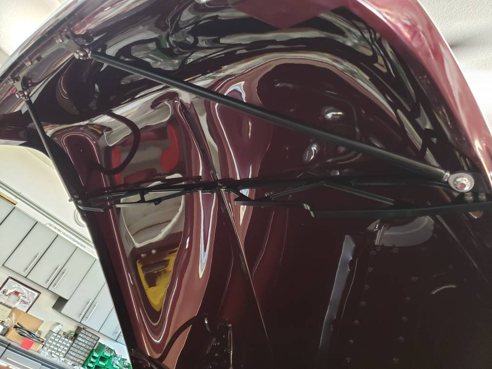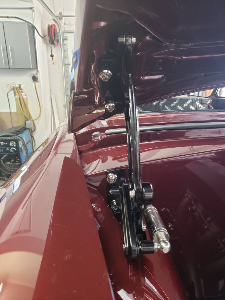 More progress last weekend.. Installed the full stainless grill. So much nicer than the factory chrome grill. Built the grill support to be over the grill versus factory the grill goes over the top of it. Much cleaner this way IMO. The holes next to the bump stops are for the hood pins. They're mounted in the hood and get pinned through the grill. Hood supports are done and installed as well. Really like the way the brightwork pops off this color. Front end is done!!