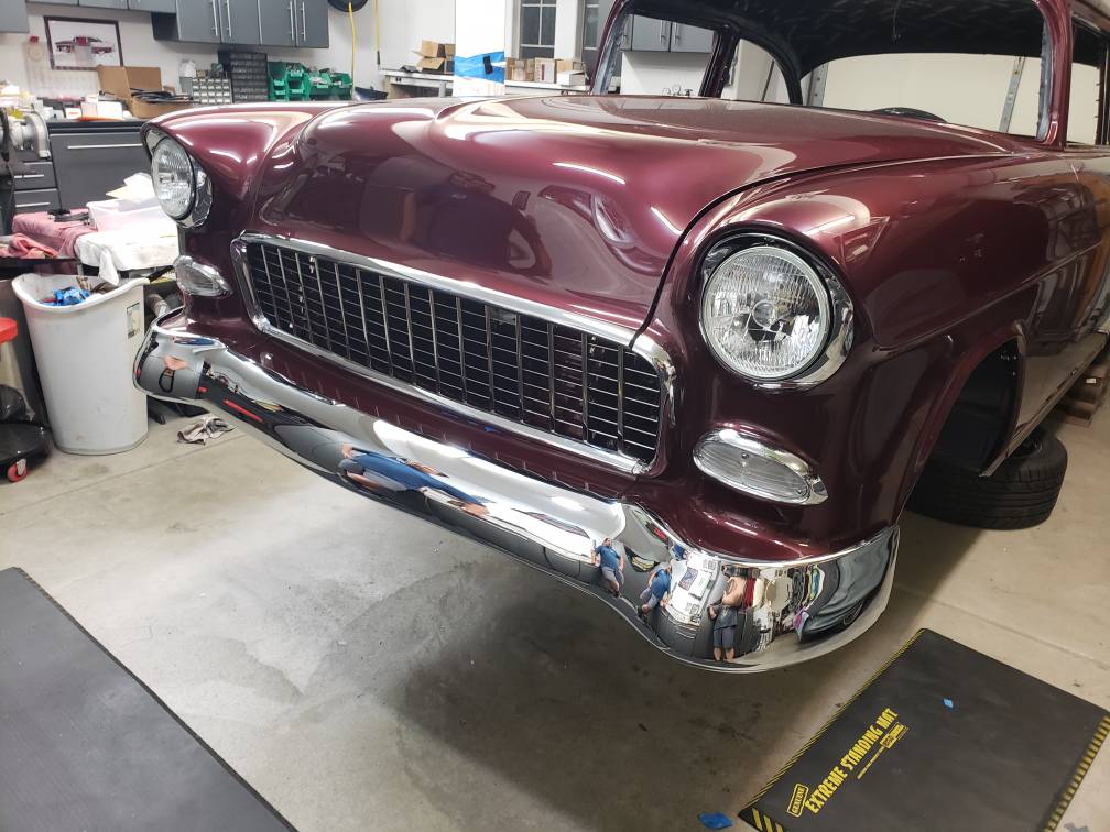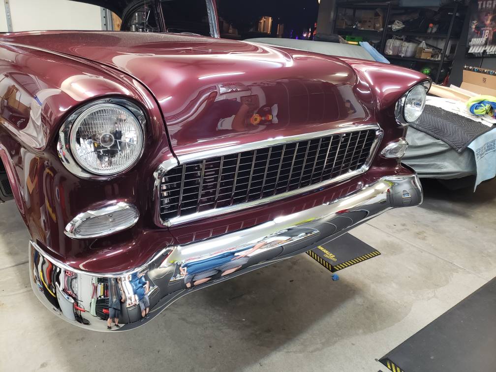 Well, Monday night was another milestone! Finally brought the car home from Interior. Seats are not done yet, but it was at a point I could take the car home and continue my mission. Now, crunch time begins! I have kept this on the down low for a while – but I’m at point I feel comfortable sharing. After 20 years in the making, I’m beyond excited and honored the 55 will be making its debut at SEMA Nov 5-8 in the Mother’s Polish Booth. We have quite the laundry list of things to get done, but I have a posse (that I am truly blessed to have) in my corner that has stepped up to make this dream come to fruition!