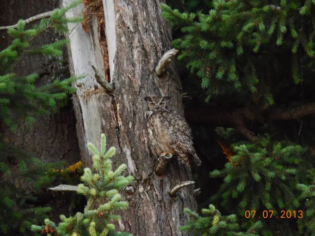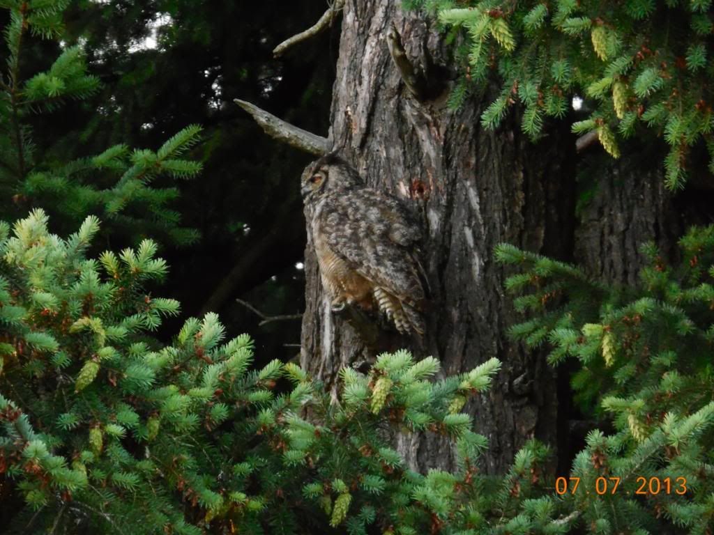 My wife was out for a walk the other day and took these pictures. The owl blends in pretty well to it's surroundings.