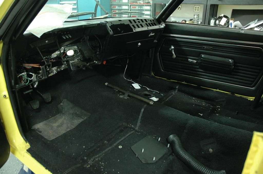 As part of the rebuild, JA is getting all new wiring. Ryan started making the new engine/trans harness. http://i1158.photobucket.com/albums/...2/DSC_3216.jpg The interior will also be refurbished. The steel pipe on top of the trans tunnel is holding up the trans through the shifter opening using a nylon rachet strap. The original trans crossmember was removed with the old subframe. A new crossmember (built into the floor) will be fabricated like was used on Hellfire. http://i1158.photobucket.com/albums/...2/DSC_3223.jpg |