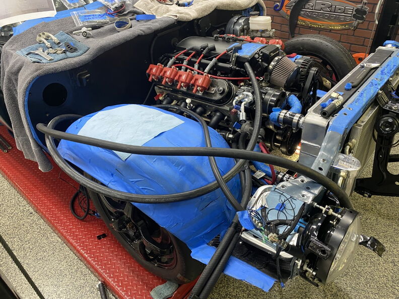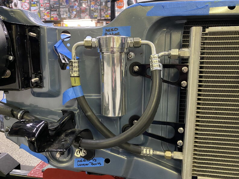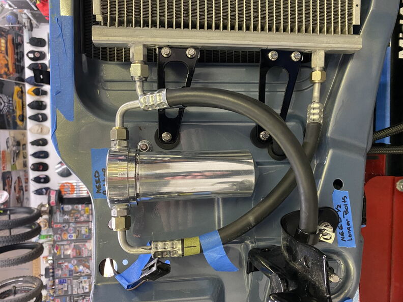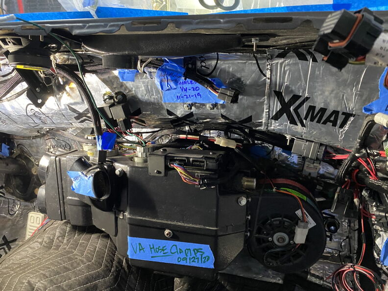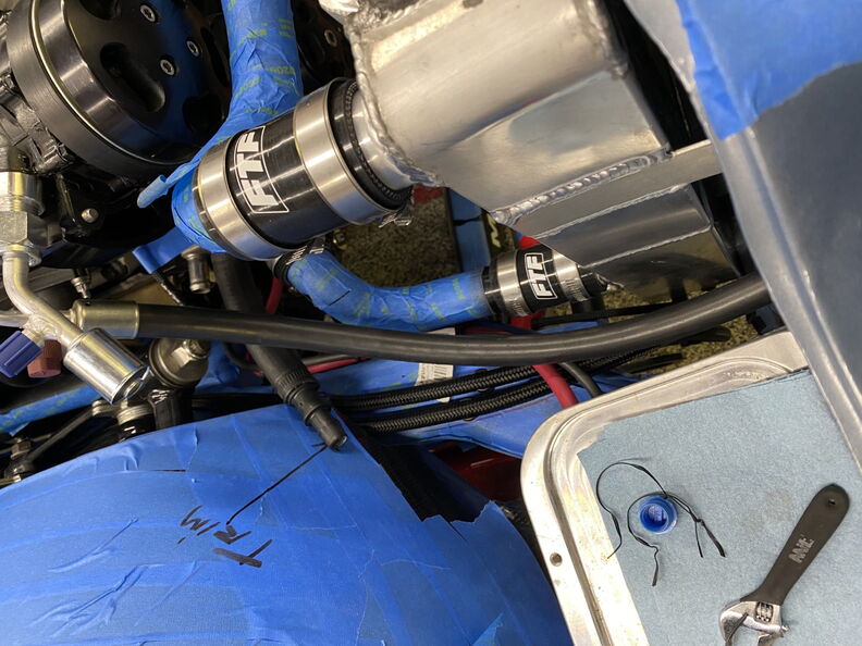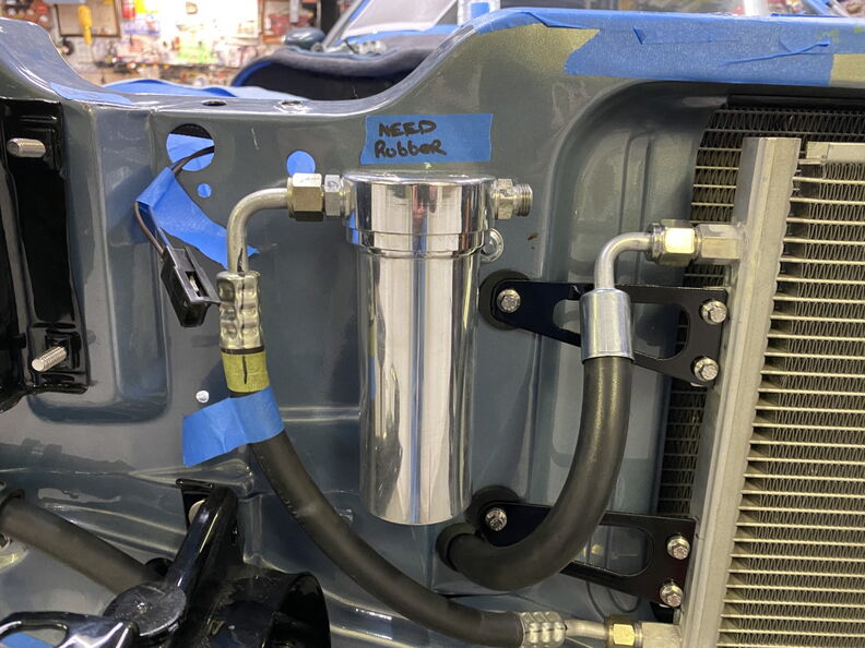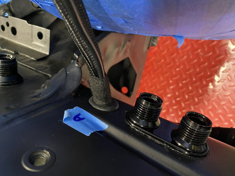 I wanted a way to tighten up the loom/grommet area to reduce the chances of water getting in. An wiring guru friend taught me this trick. It double as a way to seal up the hole and keep the harness from moving. Start your wrap on one side of the grommet and the make a couple passes on the area you want the grommet to sit and them side the grommet over the area. Once you install the grommet start taping the opposing side and it will secure the grommet in place and reduce your chances of a leak. http://www.garagescene.net/_data/i/u...fbce806-me.jpg http://www.garagescene.net/_data/i/u...6cc9e0a-me.jpg http://www.garagescene.net/_data/i/u...c0eb127-me.jpg Next up is the Vintage Air AC Lines and coolant hoses. http://www.garagescene.net/_data/i/u...8a1dd30-me.jpg I put a little silicone on the back of the fitting bracket to hold the trim plate in place and also seal up any gab that may allow water to sneak in. http://www.garagescene.net/_data/i/u...30ef82b-me.jpg Somewhere way back in this thread is the part number for the Machines Washers from Ace Hardware and also the part number for similar washers from McMaster Carr. http://www.garagescene.net/_data/i/u...ea35a23-me.jpg Sorry the picture quality sucks. http://www.garagescene.net/_data/i/u...8ab3fe2-me.jpg The fun part was me sticking my arm through the hole to get the nuts started. Once they were snug I was able to go inside the car and tighten them with a socket. I also used a smaller ratchet so I wouldn't over tighten the nuts. http://www.garagescene.net/_data/i/u...ea1e6b9-me.jpg If you have sound deadening on the inside of the car make sure you move it out of the way as it will eventually allow the nuts to loosen when it soften up in the heat. http://www.garagescene.net/_data/i/u...4b831d4-me.jpg Installed Vintage air box one more time. Don't worry it will be coming back out again. http://www.garagescene.net/_data/i/u...ef5d4f0-me.jpg http://www.garagescene.net/_data/i/u...b7450fe-me.jpg I also wanted to make sure I would be able to get to the nuts on the hose clamps if I ever need to service them. So I adjusted the line clamp so the nuts would be clearly visible if I removed the kick panels. http://www.garagescene.net/_data/i/u...37fc1ab-me.jpg |
