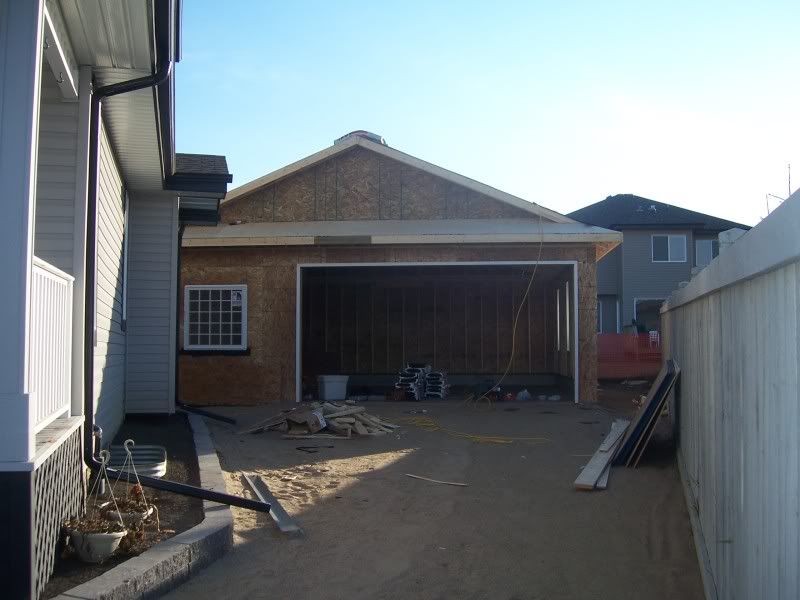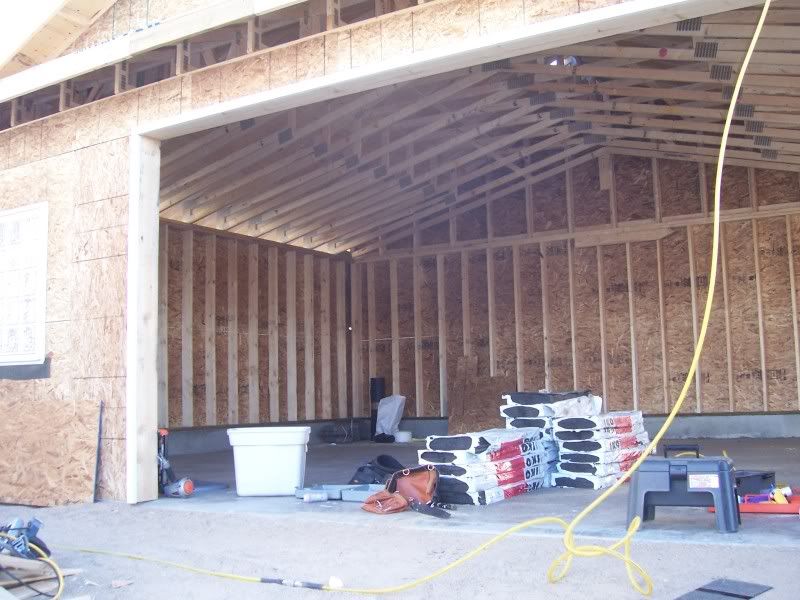 Here are some pics of my garage project from since last fall. Finally ready to bring the Camaro home from storage to it's new stall. :) Garage is 24ft deep X 28 wide with cathedral trusses to give me 12ft over the left stall for a lift.
