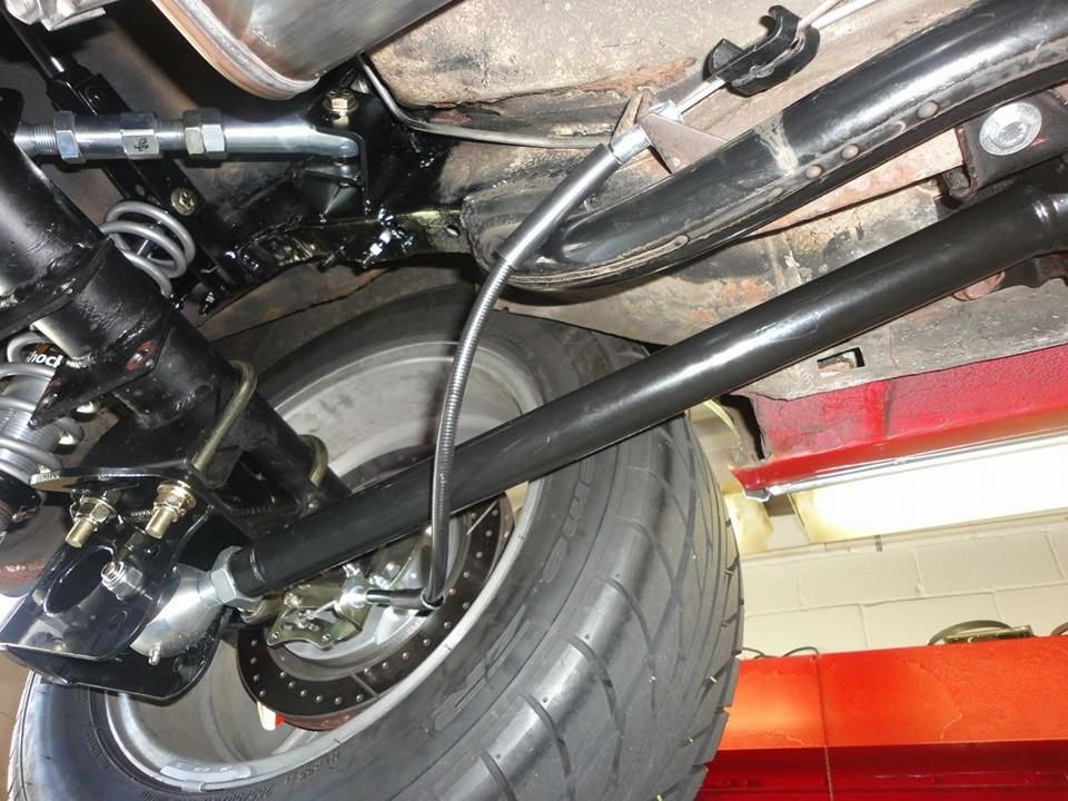 Parking brake assembly is installed. I wanted to use the most factory parts that i could so i bought a stock parking brake cable kit to use with my c6 brakes. The two rear cables would have been a pain to attach plus they were little long.  I managed to open up the hole on the rear brake cable mount to 9/16 and i ordered 1988-1996 corvette rear ebrake cables from oriellys for $20 each using ac delco part number 19143753.  These cables are much shorter and fit perfect with my brake kit and quadra link. I will attach pictures but they are not of my car since the car isn't high enough to get pictures. I then used the front cable of my kit and hooked it up to the brake and ran the line thru the subframe. Now here is where i had another problem. The intermediate cable was too short.  The correct non big block cable that comes with my car from the factory is 79" long. i need about 3 more inches.  Luckily firewheel classics also makes another cable part number pbk-11r for the big block camaro that is 82" long. This will work perfect.. Long store short you want the following : 1988-1995 corvette rear ebrake cables ac delco part number 19143763 67 camaro big block intermediate cable pbk-11r front cable pbk-10a Drill out the kore 3 bracket to 9/16" http://i30.photobucket.com/albums/c3...earebrake3.jpg http://i30.photobucket.com/albums/c3...earebrake2.jpg http://i30.photobucket.com/albums/c3...15633014_n.jpg http://i30.photobucket.com/albums/c3...14268194_n.jpg http://i30.photobucket.com/albums/c3...92039921_n.jpg |