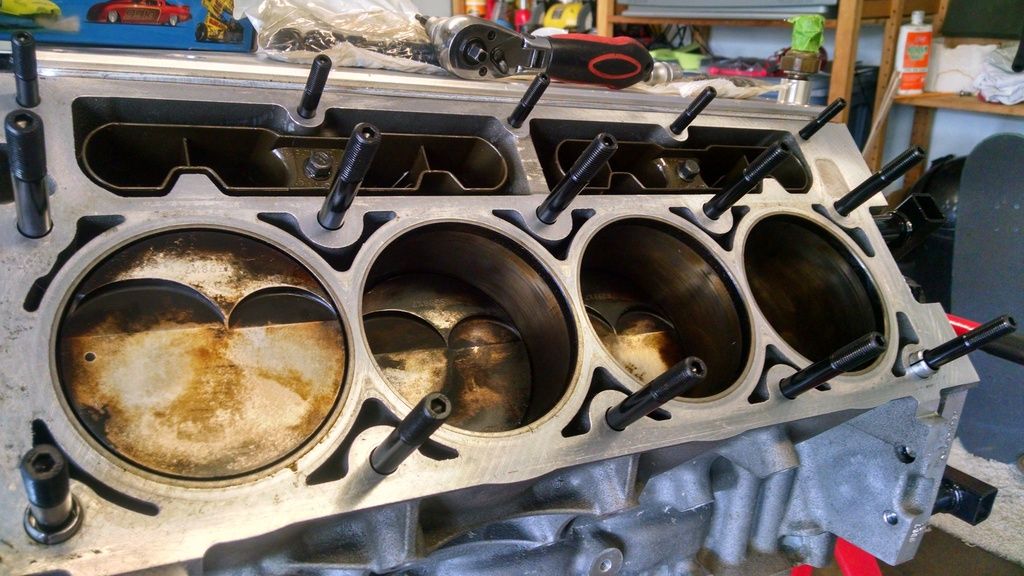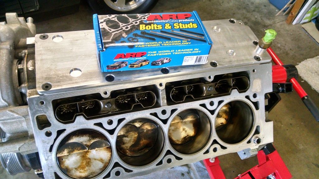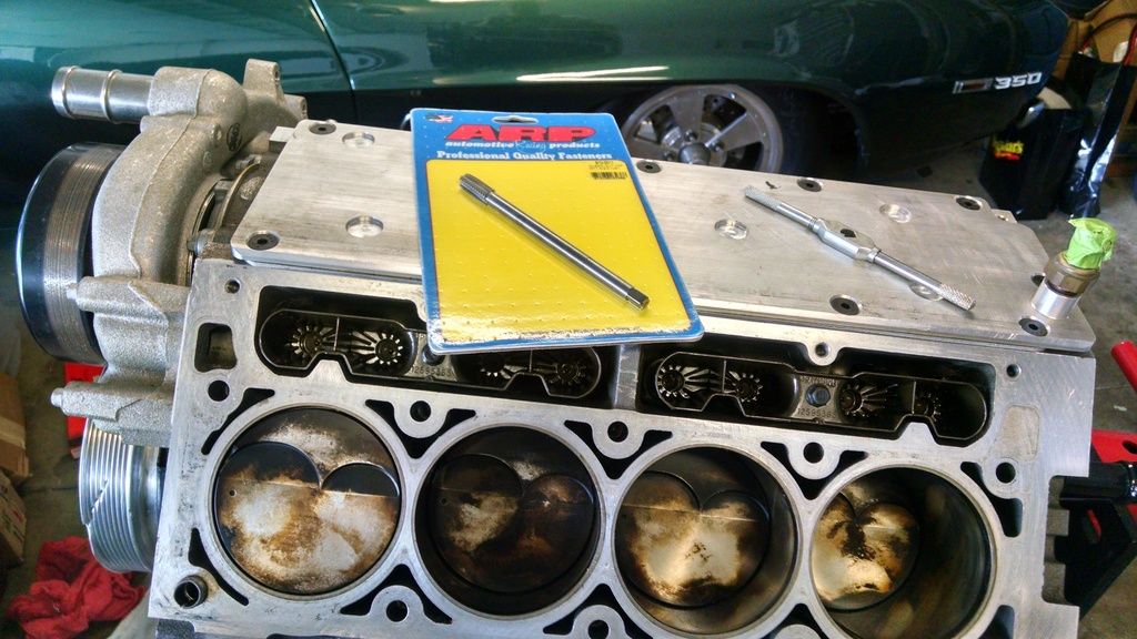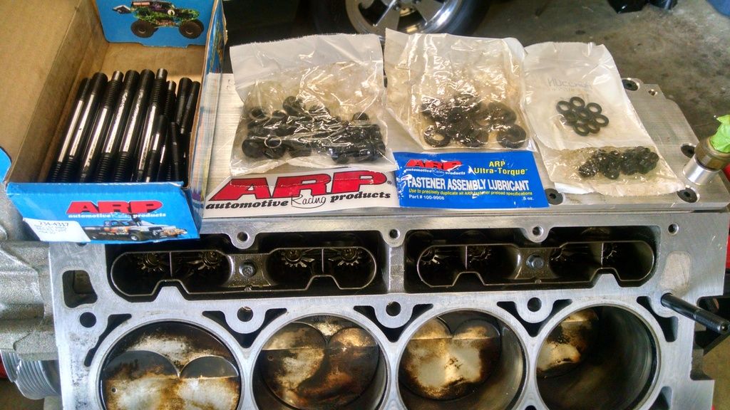 So, after I got the heads pulled off, there were several items I decided to upgrade. Starting with putting in head studs. I purchased the ARP thread chaser and started in http://i632.photobucket.com/albums/u...nstall/252.jpg I followed the process of chasing the threads, pulled the chaser out, blew it off with compressed air, then chased the threads again. Upon the second chase, there was very little material showing up on the chaser. I would then use the compressed air to clean out the threads inside the block, followed by filling up that hole with carb cleaner, letting it sit while I chased the others, then blew it out upon completion, followed by one last chase and blow out. After inspecting each one, they were indeed free from any material. http://i632.photobucket.com/albums/u...nstall/253.jpg Below is what the chaser looked like after each first pass. There is some form of factory Loctite or sealer on the stock head bolts. It's crucial per ARP to ensure you have all of this cleaned out before installing the head studs. http://i632.photobucket.com/albums/u...nstall/259.jpg http://i632.photobucket.com/albums/u...nstall/258.jpg http://i632.photobucket.com/albums/u...nstall/260.jpg After ensuring all was clear, I went ahead and began the actual head stud install. I've got the Part Number here for anyone who decides to do the same. http://i632.photobucket.com/albums/u...nstall/254.jpg http://i632.photobucket.com/albums/u...nstall/255.jpg |