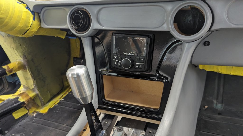 Everything that is currently wood (dash and lower dash panels) are just "plugs", I will make fiberglass molds of these plugs and then make proper fiberglass parts as the final piece. Made a quick cardboard template of the glove-box-delete panel and intended to make a wood mold from that....the cardboard ended up straight and stout enough that I decided to skip the wood mold process for this very simple part. Attachment 80354 Some radius work with filler. Attachment 80355 A splash of filler primer for a final sanding. Attachment 80356 2 layers of 1.5oz mat and 1 layer of cloth. Attachment 80357 Fast forward quite a bit and have this panel mounted in place. Fair bit of work to get the flanges to hold this piece. Still lots of clean up to be done but making this panel easy to access and remove was important as I'm going to mount some electrical behind it.. And really paying attention to the panel gaps here to account for .090 for 2 layers of leather or alcantera - keep the interior guys from hating me later. Taking every opportunity to keep ingress/egress for your feet at least reasonable without being a yoga instructor. Not much room with the door bars but compromise is always part of our lives! Attachment 80358 Pulled the passenger side of the center console off it's mold so I could reinforce some of the sections. Attachment 80359 |