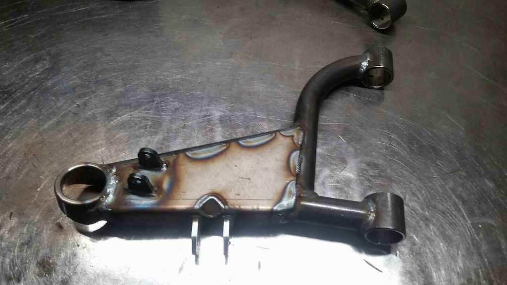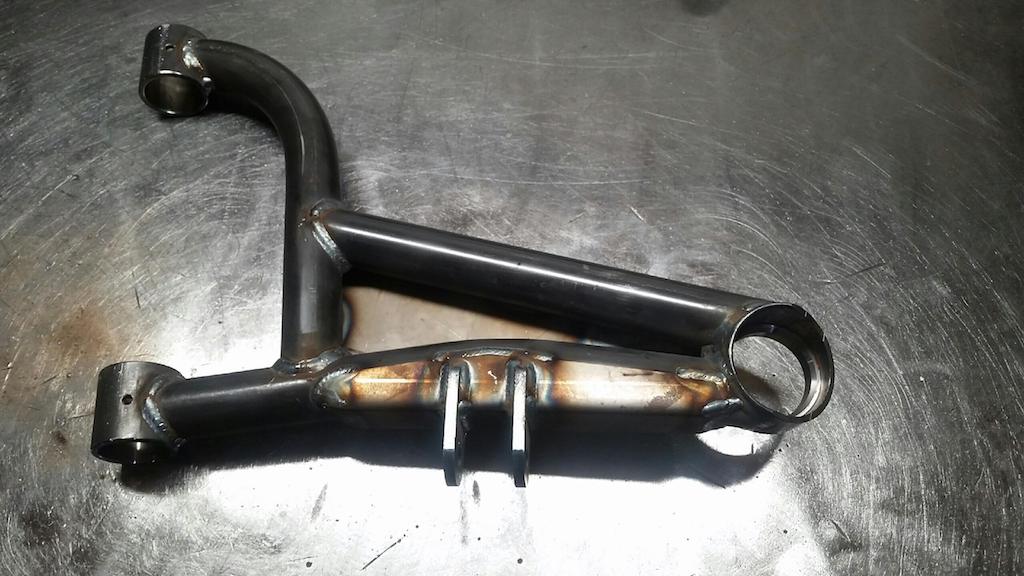 I'm no suspension expert but won't that lower control arm cause a negative caster gain? Giving a neutral or even loose steering feel? Probably a real handful in an off camber turn. The bent rear arm which if it was supported in the same plane as the front could be reinforced with a diagonal tube.