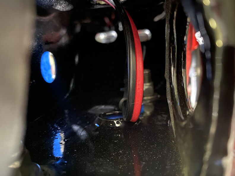 http://www.garagescene.net/_data/i/u...6ff019d-me.jpg The fuel lines runs right over the spring pocket and I am going to trim a little bit of it off to protect the fuel line. http://www.garagescene.net/_data/i/u...782bf8a-me.jpg I started slowly removing just a little bit. http://www.garagescene.net/_data/i/u...7968ff9-me.jpg Then I took just a little more off. http://www.garagescene.net/_data/i/u...0058286-me.jpg Out comes them death wheel. http://www.garagescene.net/_data/i/u...7e82dfe-me.jpg http://www.garagescene.net/_data/i/u...db4172f-me.jpg A little clean up. http://www.garagescene.net/_data/i/u...2474b73-me.jpg All better now and I am still going to run the line through DEI ExoSleeve. http://www.garagescene.net/_data/i/u...ac03f3d-me.jpg http://www.garagescene.net/_data/i/u...1811f19-me.jpg |