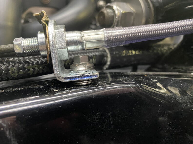 http://www.garagescene.net/_data/i/u...2f1bc09-me.jpg http://www.garagescene.net/_data/i/u...800f4fc-me.jpg I need to widen this rectangular hole so the fuel line can pass through this opening safely. http://www.garagescene.net/_data/i/u...14429b1-me.jpg http://www.garagescene.net/_data/i/u...3d6d02d-me.jpg http://www.garagescene.net/_data/i/u...97b3dc0-me.jpg I installed the DEI Heat shield and EXO-Sleeve. http://www.garagescene.net/_data/i/u...162f1ae-me.jpg http://www.garagescene.net/_data/i/u...ca5147b-me.jpg I am still trying to figure out if I am going to secure the line to the firewall or just let it hang from the fuel rail. Which doesn't sound good as I type this. http://www.garagescene.net/_data/i/u...f3131d9-me.jpg This is the final AN fitting that I need to finish the fuel line. http://www.garagescene.net/_data/i/u...560874b-me.jpg |
