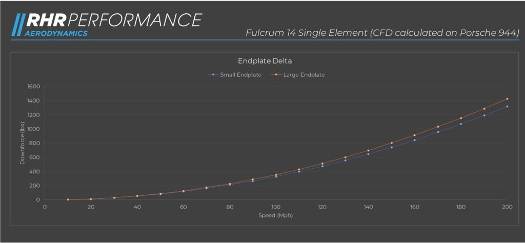 Similarily the larger endplates also increase the downforce as represented by this chart. AJ and his bussiness partner Olaaf (the engineer) ran a bunch of CFD scenarios to optimize the sizing and shape.