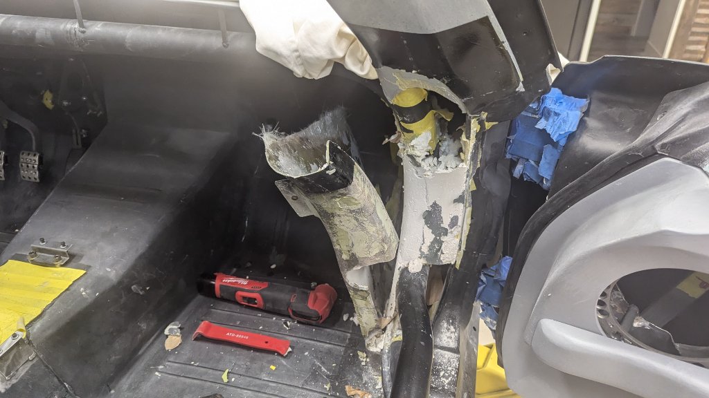 Here's some more of the ugly'. Pulling the kick panels off the reverse mold. Lots of clean up and making the flanges/mounting brackets to come.