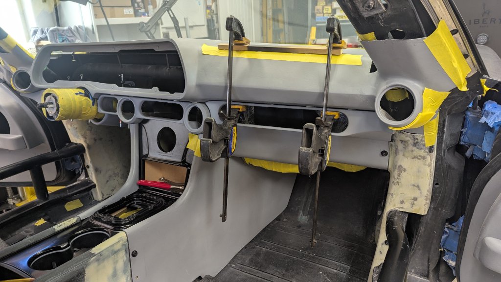Final sand on the dash before prep'n for the mold. Attachment 82133 Embracing the chaos and messiness of making the flanges for the mold. Looking like this mold will be somewhere around 20 sections. Rattle can black appliance epoxy to seal up the bondo and primer. Attachment 82134 Rough and quick is the only way to describe this process right now. Hot glue, scrap wood are your friends to hold down the sign makers plastic! Attachment 82135 |