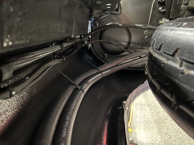 Since I am content as to where I ran the fuel line it's time for me to install the DEI Fuel Line Wrap and tape off the ends with there really strechy tape. Yes, I know stretch isn't a word.