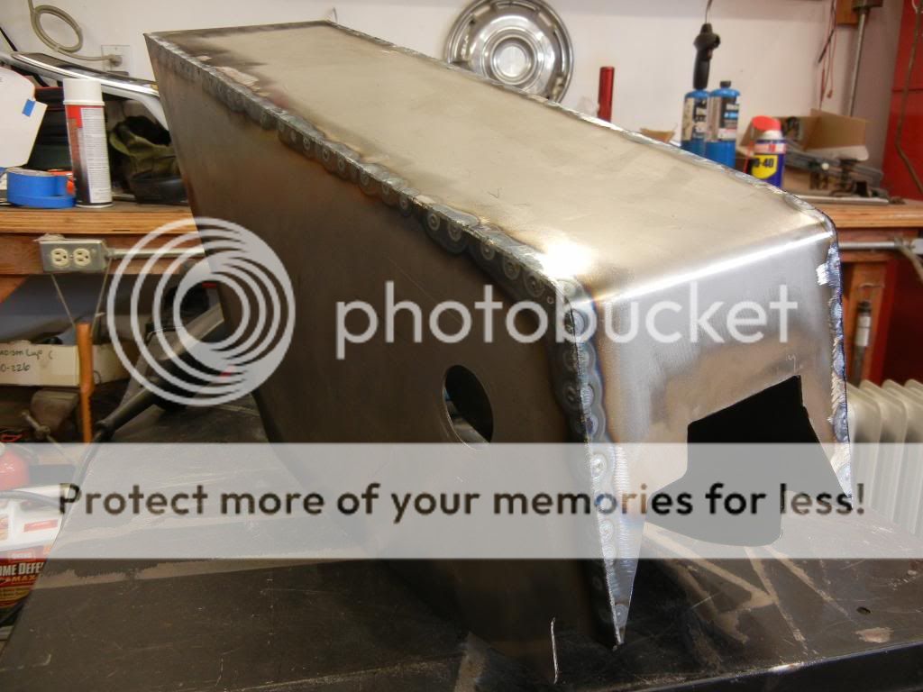 Noodled around a bunch of ideas, including what James did in cutting a tunnel out of another car (t-bird I think) and I looked at using a Harley FL front fender. Almost did that, but once I cut the rolled edges off the fender it was way too flimsy.