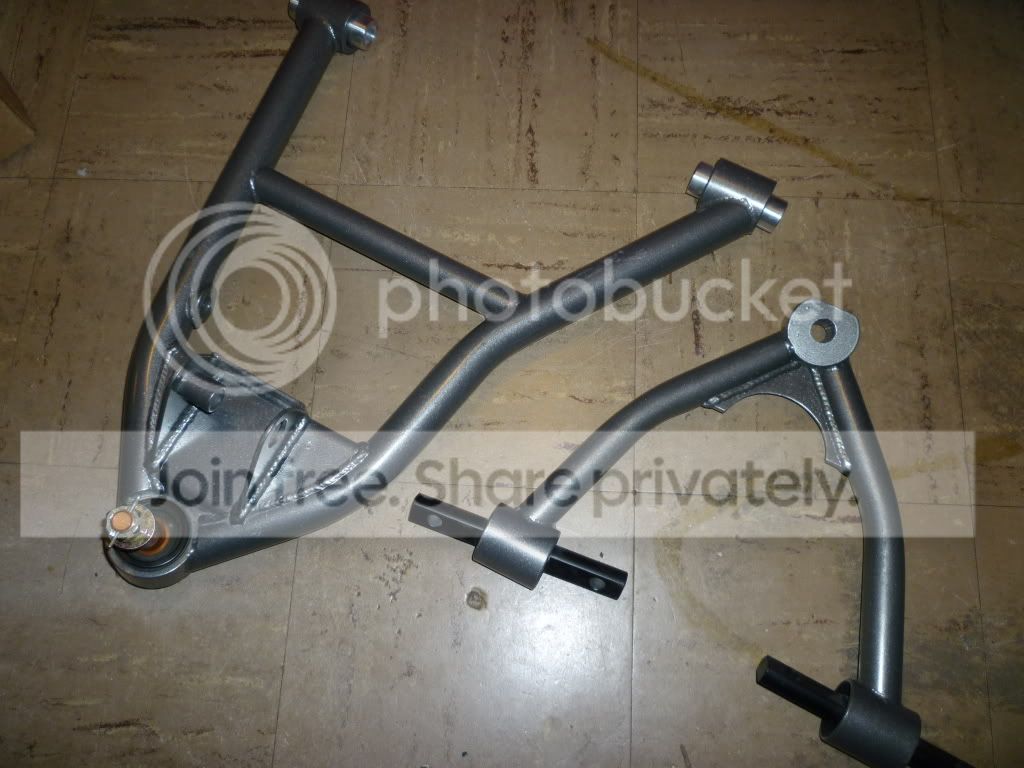 I haven't done much actual work to the car, but still planning, saving and slowly buying parts. I now have my front and rear brake setup. For the front I scored a set of used (for one testing weekend) Brake Man F4 4 1.875" piston calipers with 1.25" x 13" procast rotors. I think I will send these out and get rebuilt as these look to have been used hard. Even after the calipers get rebuilt and a new set of pads, I will be less than half of what this kit costs new. Picture comparing the front F4 and rear F3 caliper http://i755.photobucket.com/albums/x...1/P1010016.jpg As for the rear, I went to the GMR. I got the Brake Man F3 1.5" 4 piston calipers with compound #82 pads and .810" x 12.19" kit including The GMR's laser cut weld on caliper brackets. http://i755.photobucket.com/albums/x...1/P1010006.jpg I also picked up a set of Jake's Rod Shop tubular C6 control arms with Howe racing ball joints and spherical bearings. These look like really nice pieces. http://i755.photobucket.com/albums/x...1/P1010017.jpg http://i755.photobucket.com/albums/x...1/P1010018.jpg Any one need a new set of stock C6 control arms? Also, here is a sneek peek at what is happening on the rear of my car: http://i755.photobucket.com/albums/x...1/Untitled.png It's a very basic early stage 3d drawing of the new frame rails and rear suspension. I have changed and added alot of she components so far, I just have to draw it up in 3d still. Thanks, Jon |