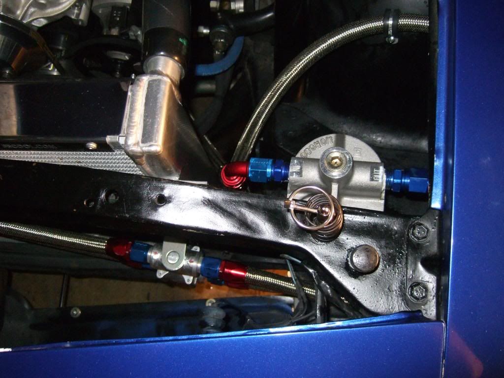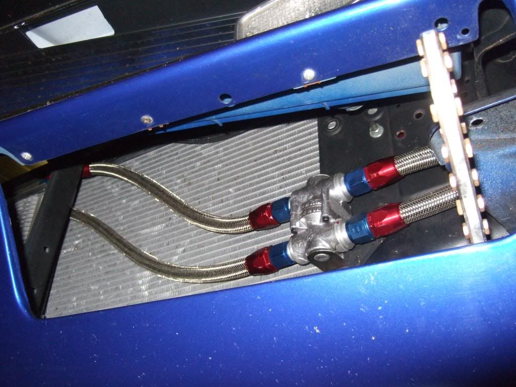 Looks great Dave! Your motor will thank you for that oil cooler on those hot track days in the middle of the desert. Your Mocal T-Stat looks very similar to the Derale I bought: