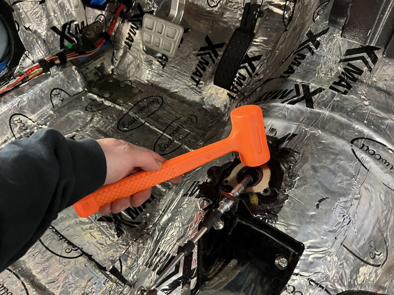 http://garagescene.net/_data/i/uploa...93666d6-me.jpg Let that sucker get nice and hot. http://garagescene.net/_data/i/uploa...9e4c7f9-me.jpg Install the four bolts that hold the shifter assembly in. Then lay the carpet back in and make sure you have it exactly where it needs to be as you only get one shot. I like installing the carpet this way as the shifter assembly keeps the carpet from moving. Once you are certain then this is where it gets fun. You need to push down on the carpet to find the first bolt. I choose to do the right bottom bolt since I am right handed. Now all you have to do is gently push the soldering iron into the carpet and it will make a perfect hole and the carpet won't fray since the iron melts it perfecty. http://garagescene.net/_data/i/uploa...426d315-me.jpg Install the bolt and move on to the next bolt. This time I choose the left bottom as this hopefully will allow me to find the top to easily. http://garagescene.net/_data/i/uploa...0462da9-me.jpg I used the shifter as template and it worked perfectly. http://garagescene.net/_data/i/uploa...6f24f85-me.jpg Next I need to locate the hole for the ShiftWorks shifter cable. Since I am here I gently ( ha !! ) peeled back the DEI sound deadening. http://garagescene.net/_data/i/uploa...577a1fb-me.jpg I installed the cable on spun the cable grommet to a safe orientation as there are a couple wires running over the top of the transmission. http://garagescene.net/_data/i/uploa...c0a8ec1-me.jpg I needed to peel back more sound deadening and of course some of it will never come out from under my finger nails. http://garagescene.net/_data/i/uploa...7336845-me.jpg Quick run to Home Depot for the correct length stainless crews. http://garagescene.net/_data/i/uploa...d1ef1c6-me.jpg Installed the shifter to make sure everything looks good. http://garagescene.net/_data/i/uploa...7c30d42-me.jpg Everyone needs one of the Harbor Freight Dead Blow Hammers. They are so cheap. http://garagescene.net/_data/i/uploa...9143edd-me.jpg I installed the cable and ran it through the gears. http://garagescene.net/_data/i/uploa...6869231-me.jpg Quick picture of the wires under the shifter for location reference. http://garagescene.net/_data/i/uploa...caed243-me.jpg I used a paint marker to mark where the wires run. As you can see I reposition the grommet. http://garagescene.net/_data/i/uploa...18e1ee7-me.jpg Since these screws are not self-tapping I drilled a 7/64 hole. http://garagescene.net/_data/i/uploa...018e6a5-me.jpg http://garagescene.net/_data/i/uploa...d0f146e-me.jpg http://garagescene.net/_data/i/uploa...c8fd4a2-me.jpg http://garagescene.net/_data/i/uploa...d097a0d-me.jpg |