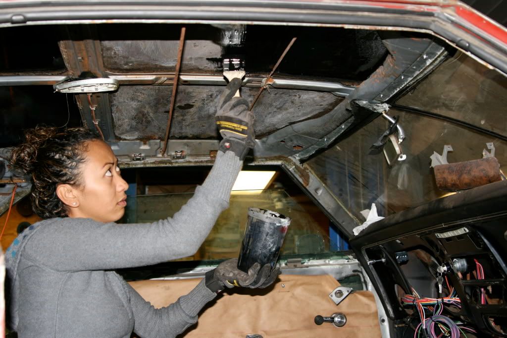 Unisteer rack and pinion steering being modified to fit the notched oil pan. I had to be lowered by a 1 inch and half. Dont worry more metal was added to get the strength back. |