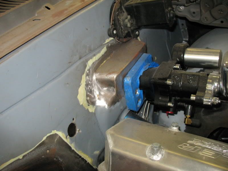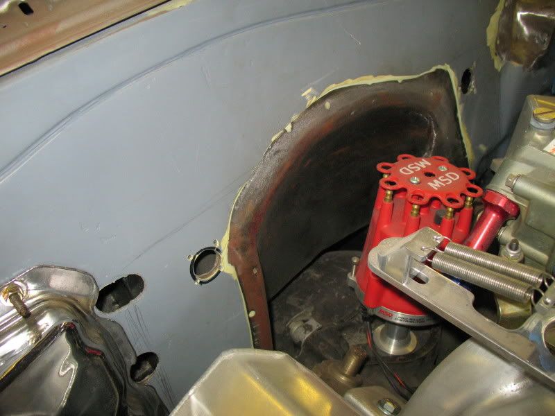 Here's some pics of some firewall modifications to accomodate the engine being set back in the car a couple inches. *The filler work was done by the previous shop and will be fixed when we get ready for paint (it's pretty thick)*