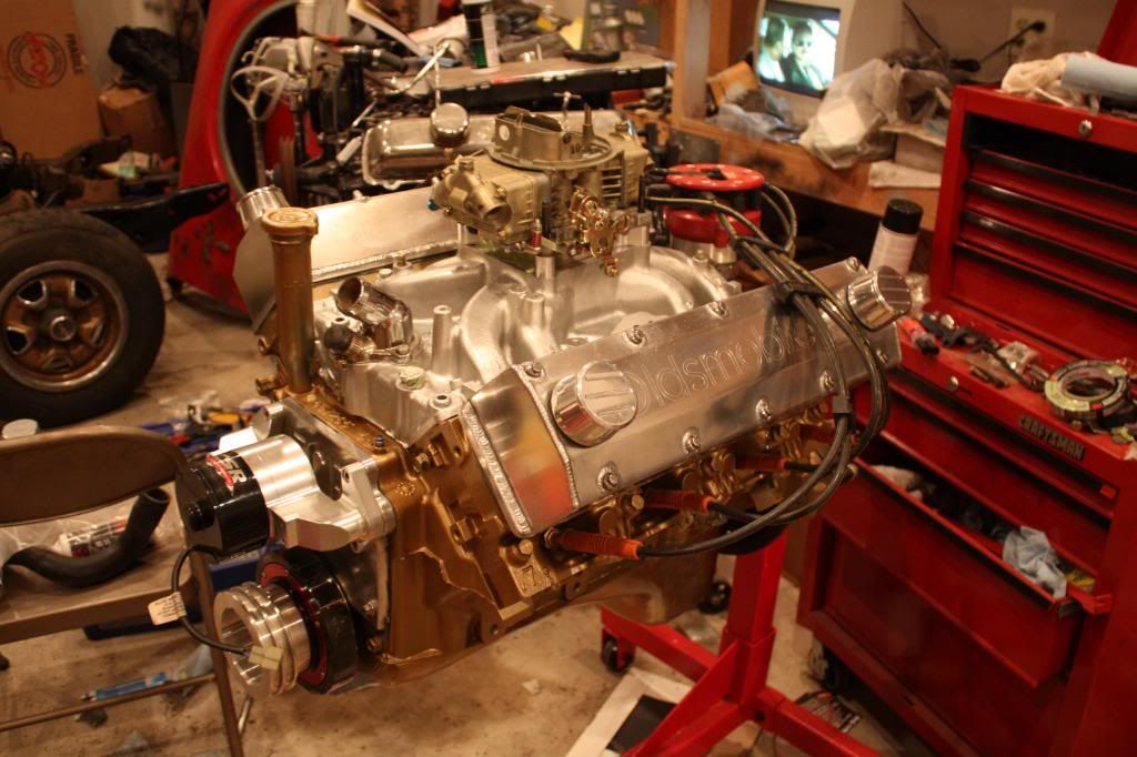 Decided to do a little buttoning up on the motor for now...gonna run carbed for a little while until I can afford the fuel injection. I want to upgrade the suspension and rolling stock first...get her moving. Then possibly do the injection then body or vice versa... :faint:
