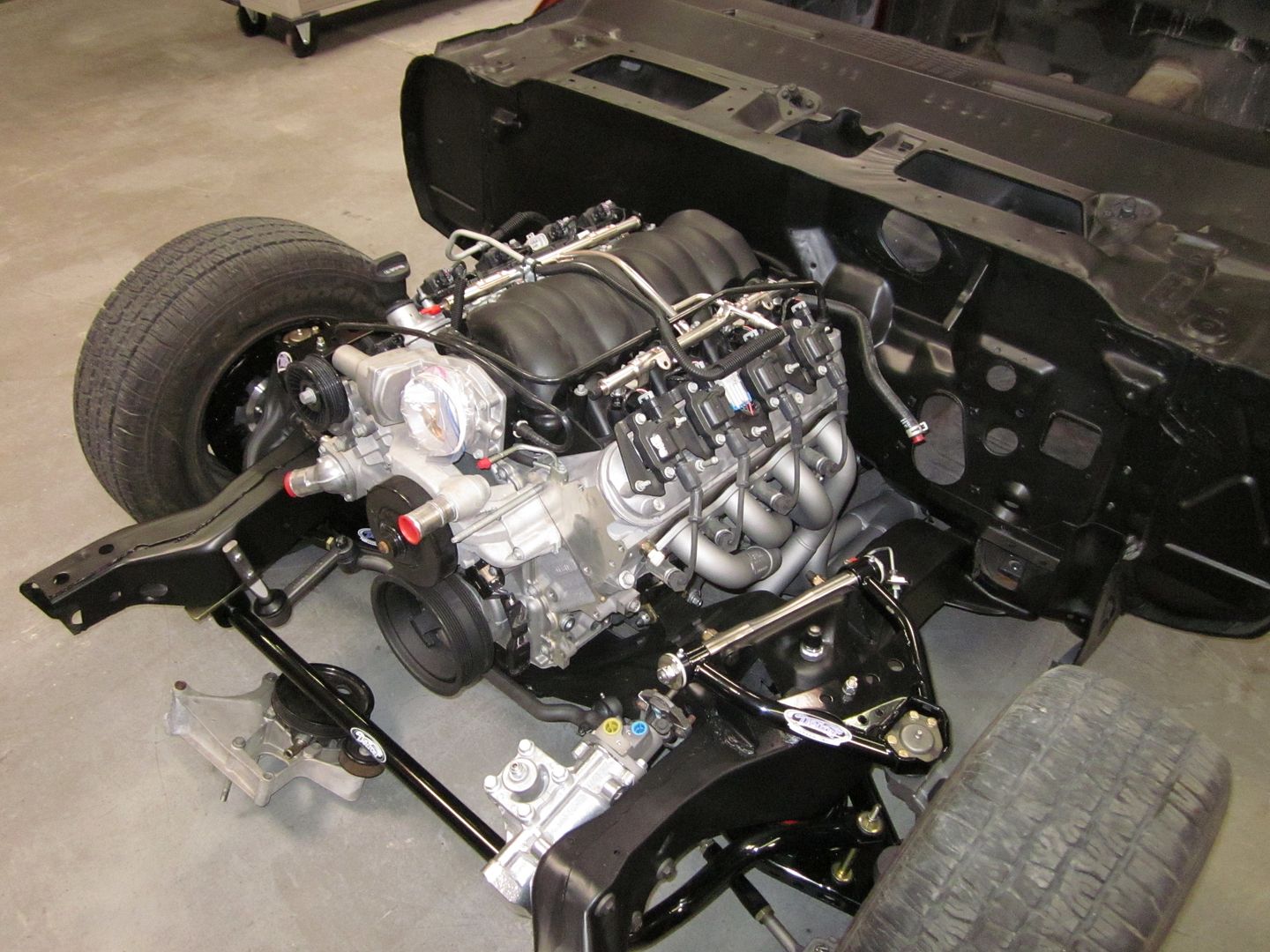 http://i1015.photobucket.com/albums/...IMG_0378-1.jpg I recommend that you use the DSE engine mounts.. It is designed to work with engine placement in stock location.. DSE headers will make it a simple for exhaust.. Use a 2002 Camaro oil pan or the new one that Mast just came out with.. I usually set up @ 2 degrees down on transmission angle & 2 degrees up on the pinion.. I hope this helps! |