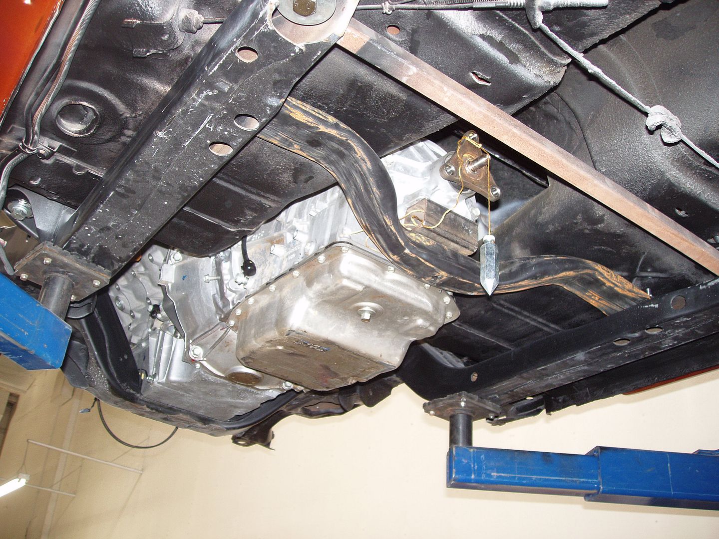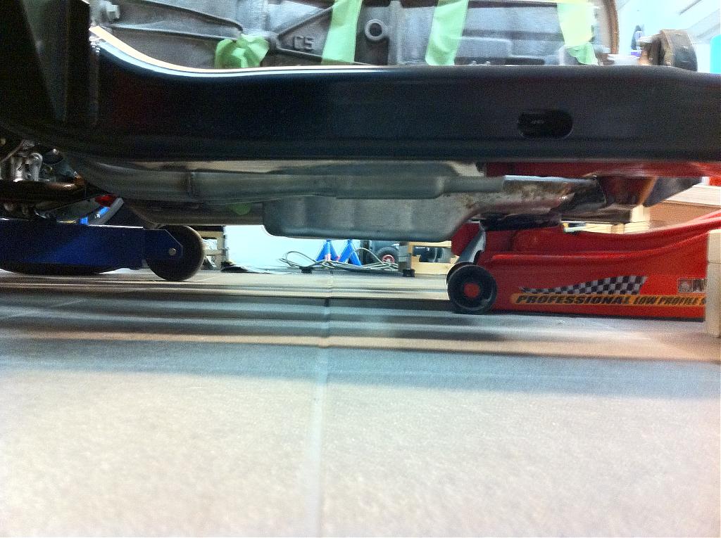 These transmissions are huge! Take into consideration that 2nd gen drivetain sits offset torwards the passenger side about 1/2 an inch.. http://i1015.photobucket.com/albums/...P3080056-1.jpg http://i1015.photobucket.com/albums/...P3080053-1.jpg Pontiac G8 tansmission pan is shallower.. I am setting that up currently on a first gen.. |