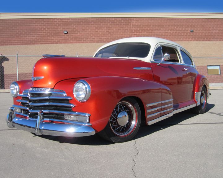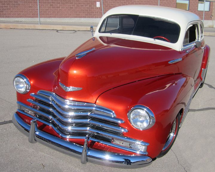 Well you guys nailed it. Good to see that you guys dig the old stuff as well as the g machines. Well, the owner told us it was a '48 Chevy Fleetline. He said all the trim on the car was original. For now, we'll go with what he said but based on what you guys said it sure makes me curious. A local guy on our facebook page also called it a '47 and I think he may know the car's history, he's really connected around here, so that makes me even more curious. I really like the old stuff, but having been born in '70, muscle cars are my gig so I'm not up to speed on the fine details of the fat fendered and earlier cars. Here's a couple more shots. The owner picked it up Friday afternoon, with a big grin because the car turns and rides the way it's supposed to after the suspension reconfiguration. Not much of a pro touring car but it's the roots that got us all where we are today. It sports a beautiful small block Chevy with G body front suspension and a Nova 12 bolt rear axle. The color is a beautiful shade of Burnt Orange metallic with an off white roof with the same metallic in it. Really nice ride. Now, back to the Camaros and Chevelles in the shop... http://i1299.photobucket.com/albums/...psbd6aa0b1.jpg http://i1299.photobucket.com/albums/...psaf87c7ac.jpg |