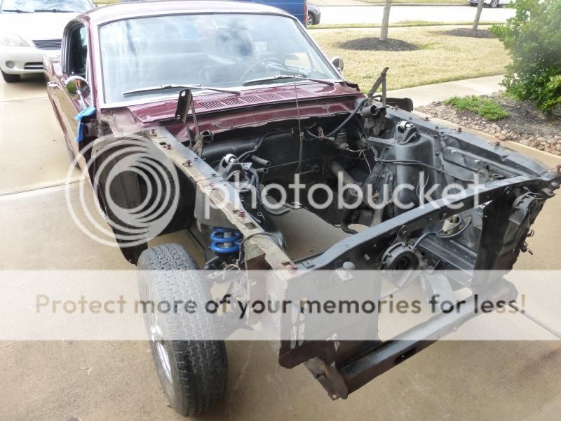 Removed the engine/tranny. I decided to drop the tranny from the bottom, and pulled the engine from above. Normally I'd pull the engine/tranny as a whole, but with the core support in the way, I figured pulling them as separate units would be easier. Also, I couldn't get my wrench around a few header bolts (not sure how my friend installed it), but a few minutes with the sawzall solved the problem. http://i616.photobucket.com/albums/t...ps84077d77.jpg Pushed the car outside for a quick wash of the engine bay/underside. http://i616.photobucket.com/albums/t...pscc22a085.jpg A couple of hours later, the front suspension is gone. http://i616.photobucket.com/albums/t...ps5e97d4f5.jpg Hopefully I'll have the shock towers cut out in a week, and have the DSE stuff mocked up. |