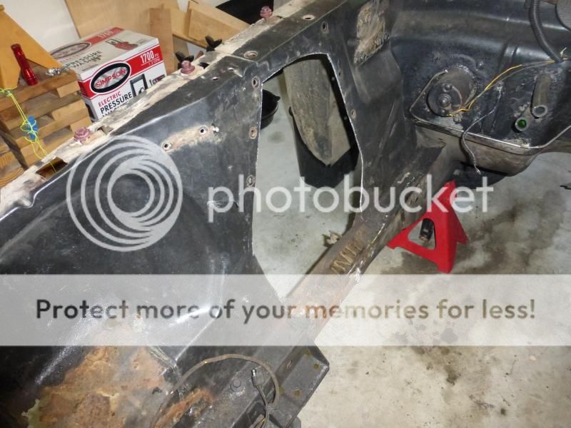 http://i616.photobucket.com/albums/t...psa7bf273f.jpg http://i616.photobucket.com/albums/t...psd840d4cc.jpg Torn down the front end sheet metal in preparation for engine removal. http://i616.photobucket.com/albums/t...ps3af0d1a3.jpg http://i616.photobucket.com/albums/t...ps3e172ca9.jpg The car was worked on (or hacked on) by the PO, prior to purchase by my friend. The front end hardware consist of metric and SAE bots, sheet metal screws. The PS headlight bucket was held on to the fender with sheet metal screws. |