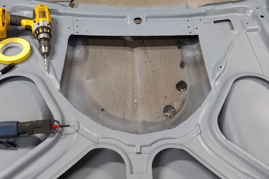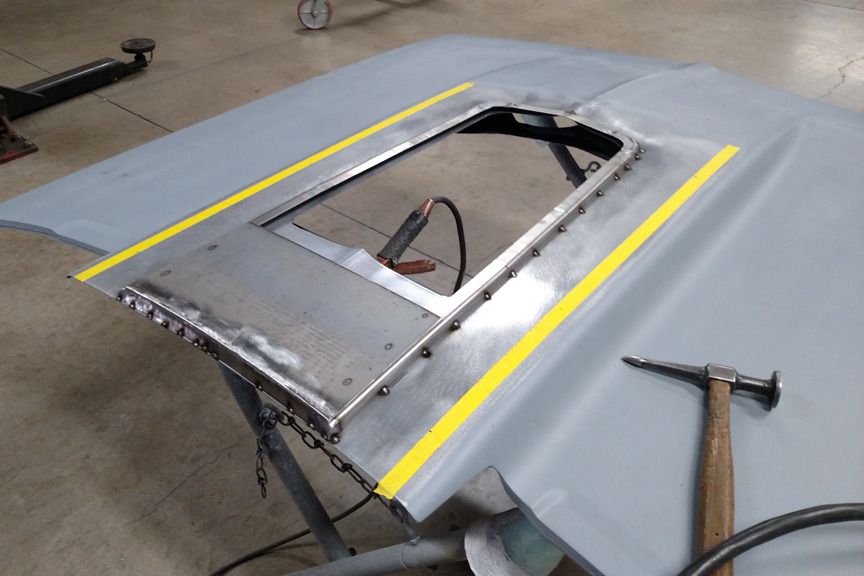 Starting with the steel cowl hood that was on the car, Jeremy's doing an awesome job making the Z28 scoop look like it was meant to be there...