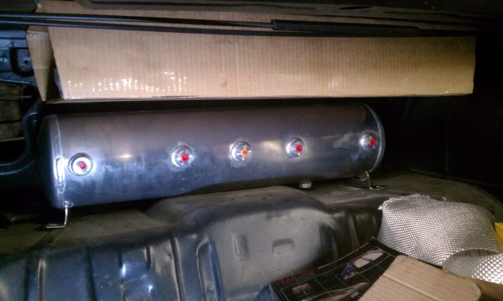 I should never have said things were going smooth. The Holidays came and crushed my progress. I need to get the sub box sorted out so I can make the rear deck. Once the deck is finished I can finish off the tops of the rear panels. That required getting my air tank . Everything is currently laid in there with a cardboard box to check for clearences.