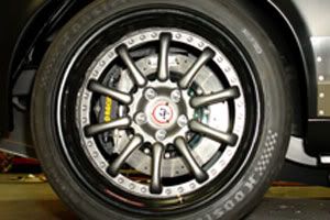 Either 18/19 or 19/20 remember this is a big car and without a decent height tire in the rear it just won't look right. Welcome to PT vs full race. More unsprung weight. On the other hand a larger diameter tire does offer a bigger contact patch. These mock up pics were with a 335 30 20. 28" tall. http://i291.photobucket.com/albums/l...hassismock.jpg |