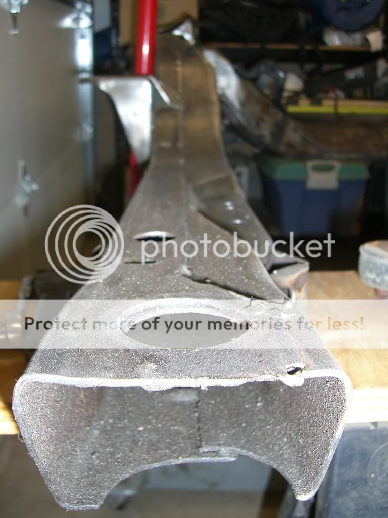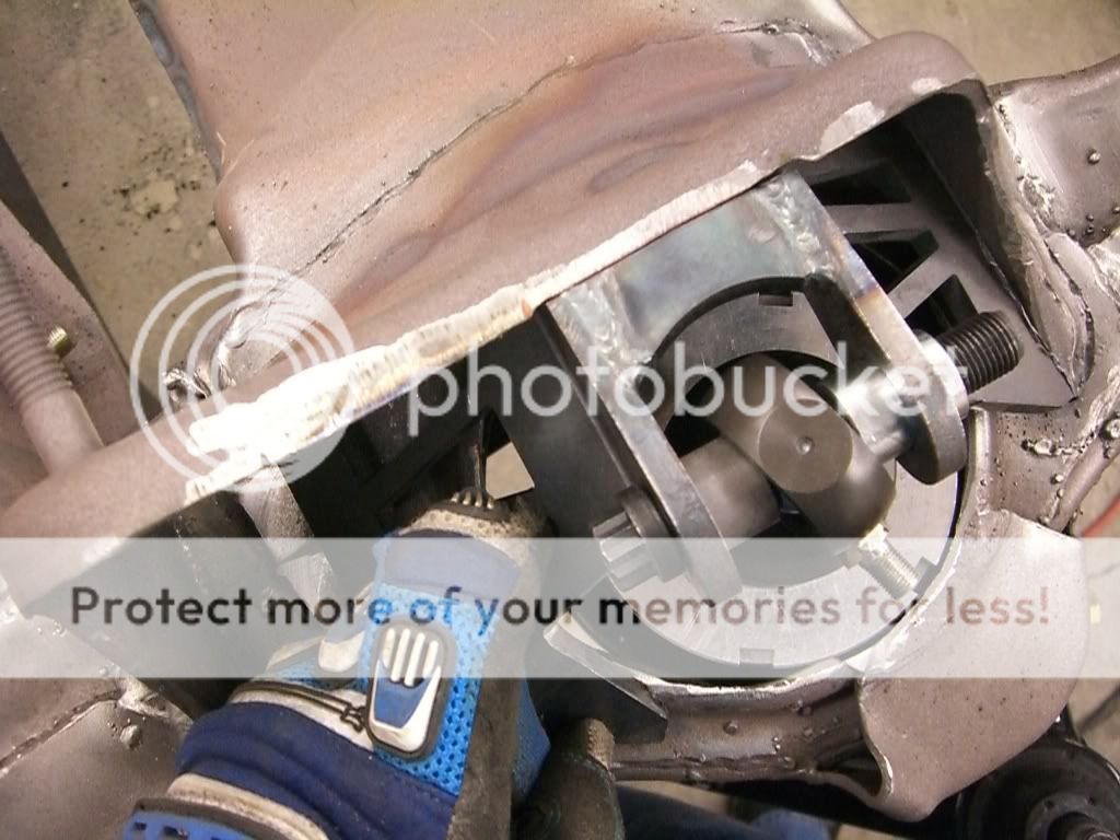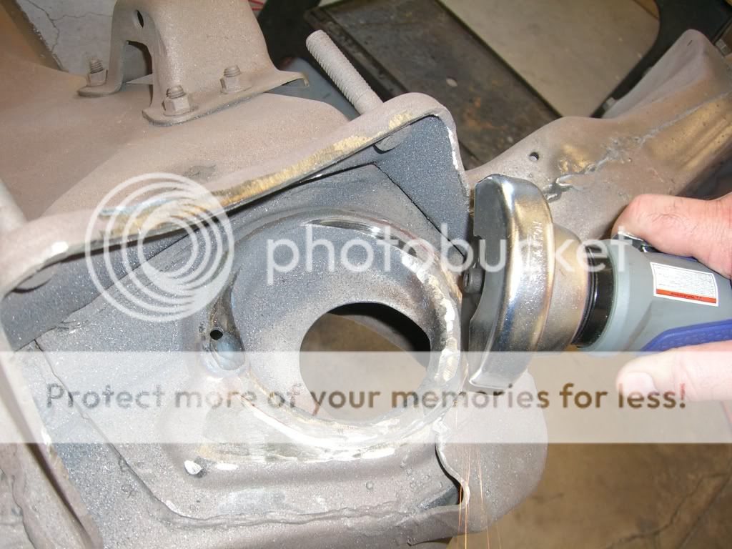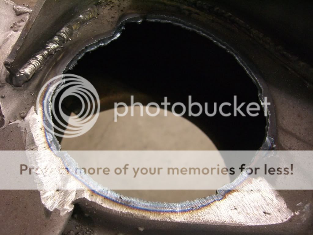 http://i490.photobucket.com/albums/r...e/CIMG3394.jpg I also took the time at this point to add a little extra weld to the UCA brackets. Nearly impossible to get that joint in there clean and it's tough to get the torch close enough for good puddle control and see what you are doing. The welds reflect that but they are fully penetrated.....just ugly. On the other side I decided to try something different to see if the process could be sped up a bit and improve the quality. It involved a slightly more sophisticated tool than the sawzall. http://i490.photobucket.com/albums/r...CIMG3492-1.jpg Boy do I like this thing! Where it took me nearly an hour to cut away the other spring pocket with the sawzall bit by bit, the plasma cutter did the job in about 45 seconds leaving a muuuuuch nicer hole... http://i490.photobucket.com/albums/r...CIMG3497-1.jpg http://i490.photobucket.com/albums/r...CIMG3495-1.jpg http://i490.photobucket.com/albums/r...CIMG3498-1.jpg |