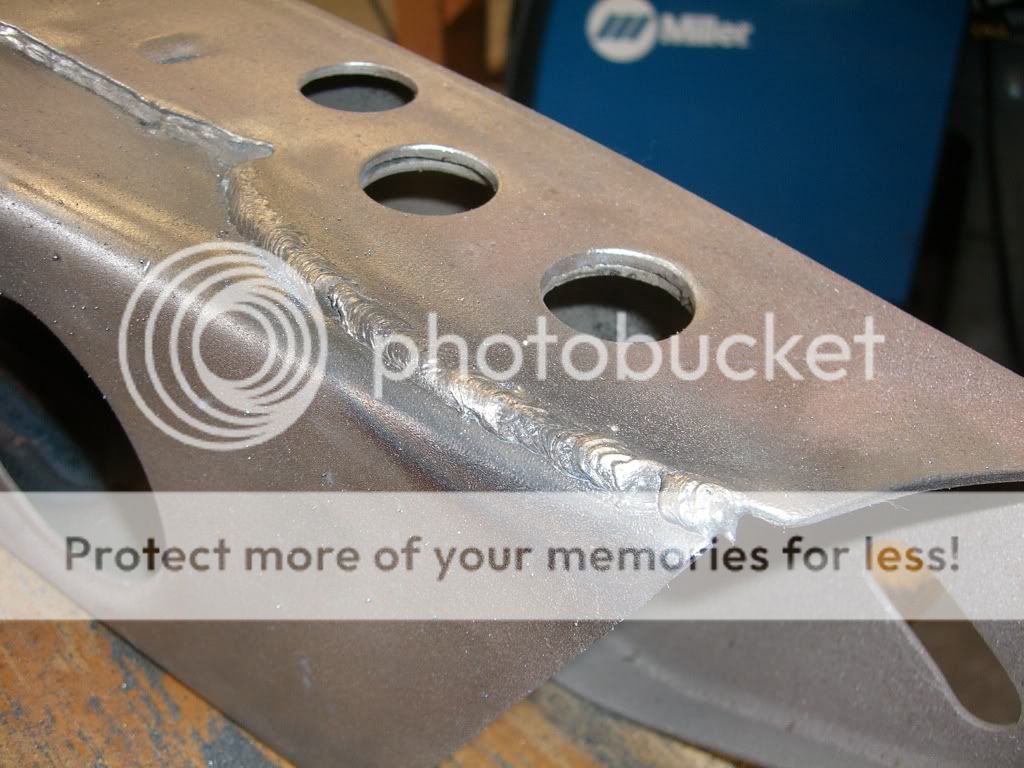 http://i490.photobucket.com/albums/r...e/CIMG3539.jpg http://i490.photobucket.com/albums/r...e/CIMG3537.jpg http://i490.photobucket.com/albums/r...e/CIMG3541.jpg Still pretty messy with spatter and the goo from the flux-core wire but it got late and I needed dinner. Now it's even later and I need to go to bed, so more tomorrow if I get home from work early enough to work on it. Thanks for watching....... |