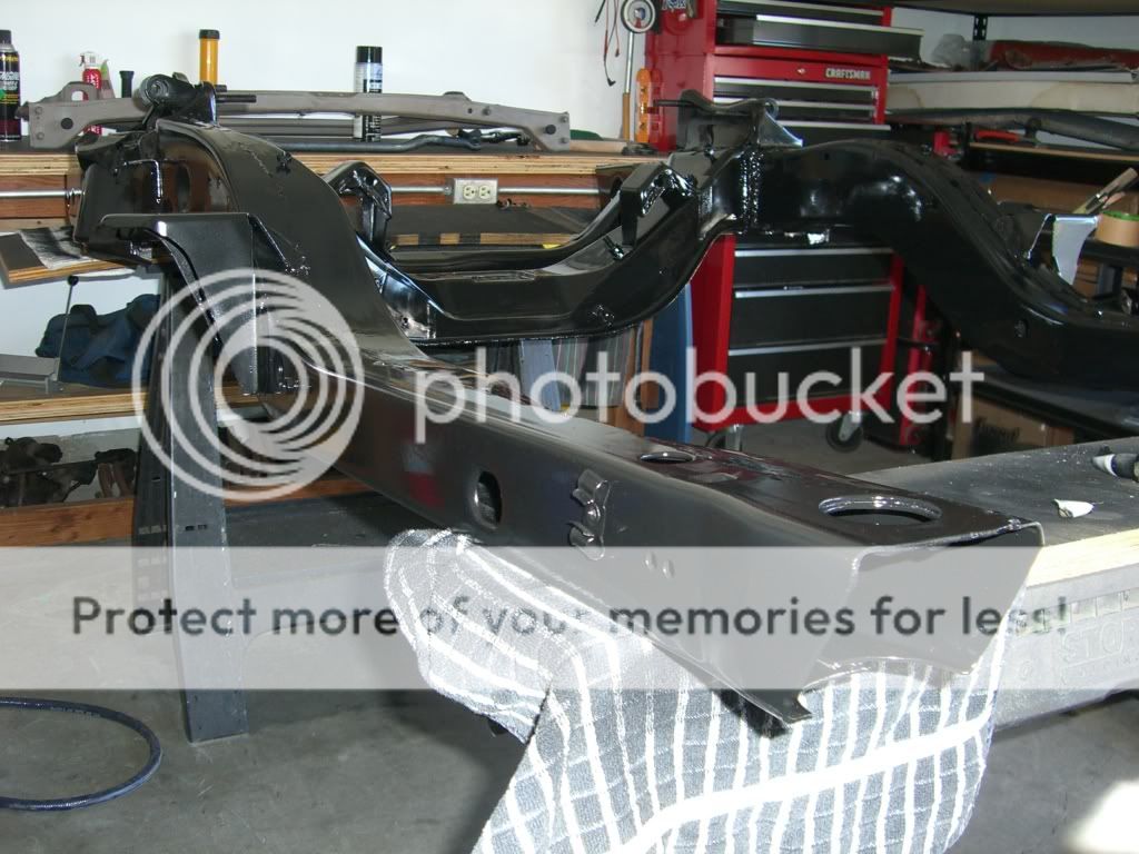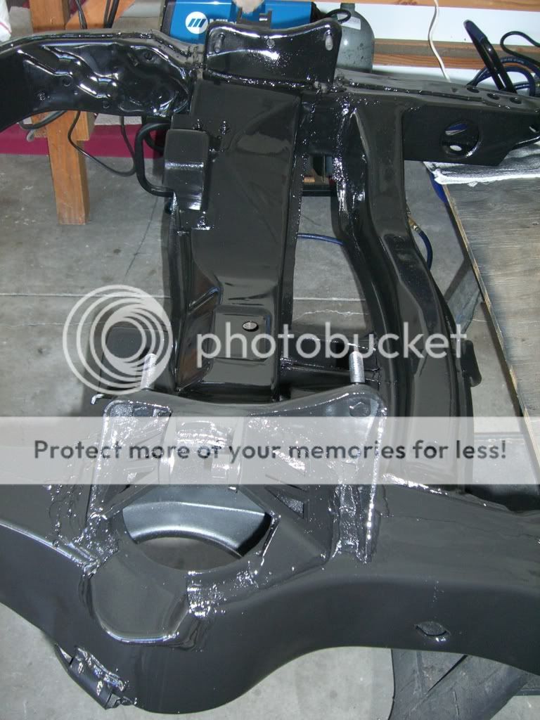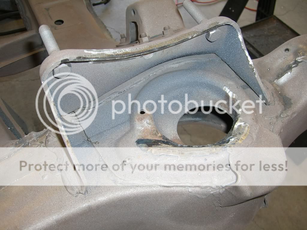 Anyway.... Topics: Subframe and Core Support Paint, review of Eastwood products and installation of DSE subframe mounts. So here is what we began with on the subframe. 40 years of gunk, thankfully no rust though. http://i490.photobucket.com/albums/r...e/CIMG3258.jpg A bit of time spent with the wire brush prior to sandblasting allowed me to inspect for cracks to make sure the subframe was still useful. http://i490.photobucket.com/albums/r...e/CIMG3260.jpg I did find a couple of cracks in the welds surrounding the Upper Control arm mount stands so if you are going this route check there first. Pretty simple though to grind out the old weld and into the substrate a bit to find fresh steel and re-weld it. YMMV of course. After sandblasting and all the welding I've outlined previously the material on the subframe looked like this. http://i490.photobucket.com/albums/r...e/CIMG3363.jpg and the core support (also sandblasted) looked like this... http://i490.photobucket.com/albums/r...e/CIMG3589.jpg Hindsight being 20/20 I should have painted the core support as soon as I got it back from the sandblaster. It would have saved me some time. It sat for a few weeks and developed a bit of surface rust. Nothing bad at all, but it cost me some wire-wheel time that I would have preferred to spend in other ways. Oh well, it's an opportunity to further evaluate the Eastwood stuff right? I'll keep telling myself that. |