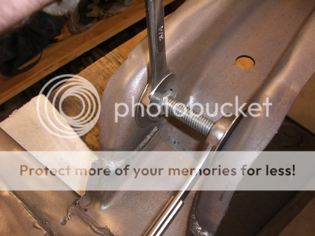 Topic: Fitting new suspension bits on 40 year old subframes. As previously mentioned, the tolerances on 40 year old cars are......not good. You saw above how fitting of the ATS coil over brackets required widely disparate adjustments to the brackets to get them to fit in the UCA mount stands. The brackets were identical, the mount stands.....not so much. I guess that explains the goofy mix of alignment shims that were in the car when I disassembled it. So the new challenge is fitting the Speed-Tech lower control arms. I attempted to test-fit them prior to painting the subframe. To say that they required "persuasion" would be a gross understatement. I thought for a second that I had gotten arms for the wrong year Camaro. I measured everything, twice and it wasn't the arms. It was the LCA mount pockets. They varied in width by as much as 3/16" and the angles relative to each other were off as well. I spoke to Blake at Speed-Tech about this and his reply was that this was fairly common. Though more common in LA vs Norwood cars. His suggestion: http://i490.photobucket.com/albums/r...e/CIMG3553.jpg A 4" length of 1/2" all-thread Two 1/2" nuts Two fat washers This nifty little device is used to "adjust" the width of the LCA mount pockets so that the LCA bushings will slip into place. Like so: http://i490.photobucket.com/albums/r...e/CIMG3551.jpg The end result is that the LCA now slips easily into place w/o the need to force, sweat, curse, cajole or grab a BFH to get it in place. The subframe and core support are now painted. I have a few more photos to take and I'll post an update on that and a more complete review of the Eastwood products in a couple of days.....maybe tonight....depends on what my wife has planned for me after work. |