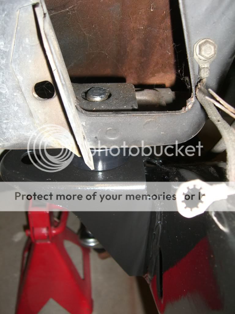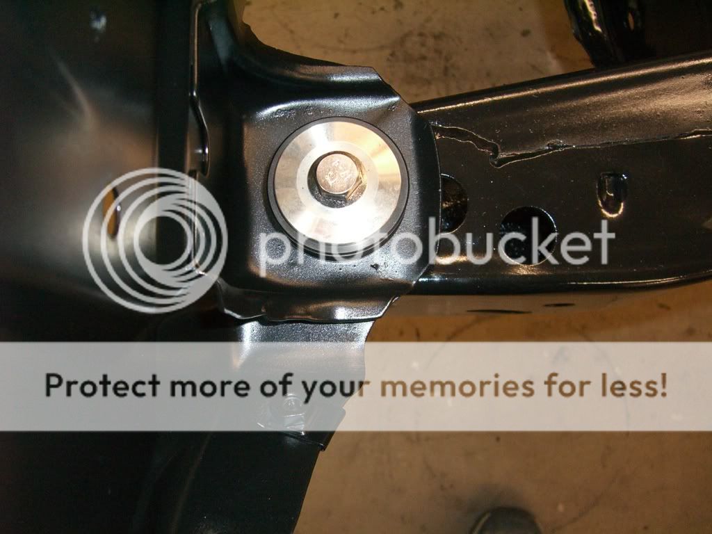 http://i490.photobucket.com/albums/r...e/CIMG3532.jpg Yes I know the shock is upside down. The adjustable perch is slightly larger than the fixed one and I assumed closer to the OD of the spring. http://i490.photobucket.com/albums/r...e/CIMG3534.jpg http://i490.photobucket.com/albums/r...e/CIMG3536.jpg Again, YMMV on the trimming required. This is just what had to happen to get it to fit up nicely on MY particular subframe. It isn't hard. Just time consuming. You grind a little, then test. Rinse and repeat until you get a nice fit then tack the sucker in place. http://i490.photobucket.com/albums/r...e/CIMG3535.jpg |