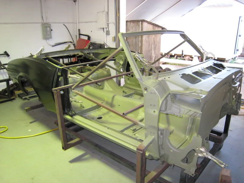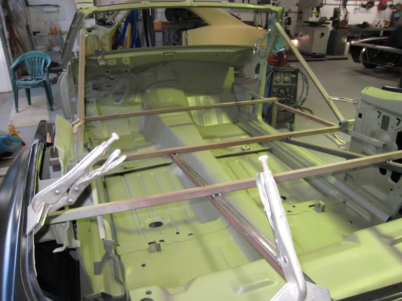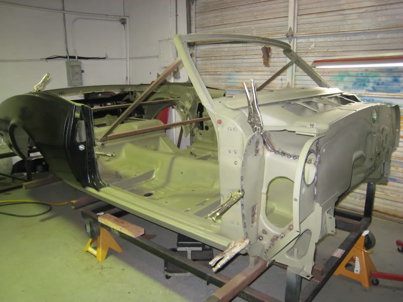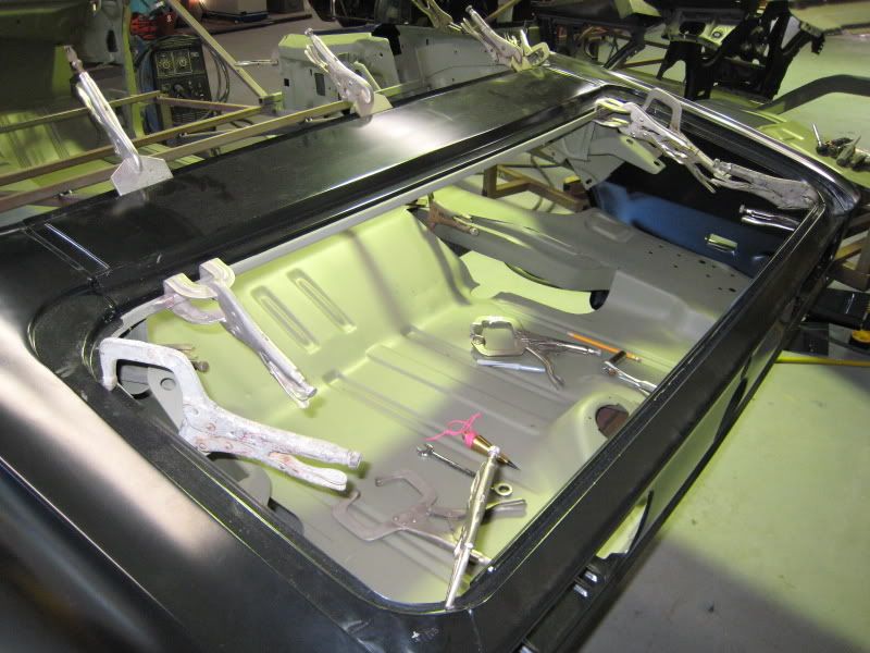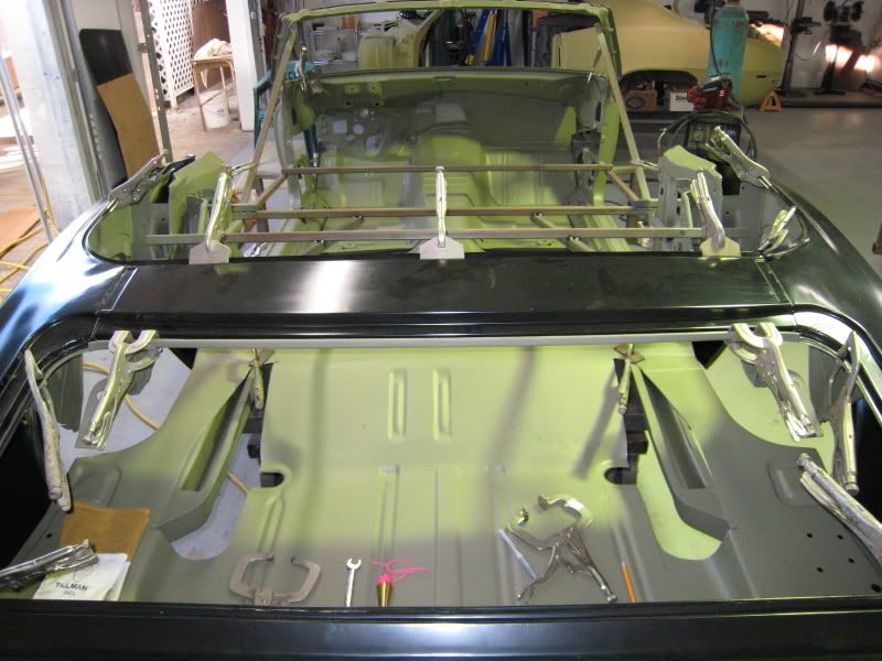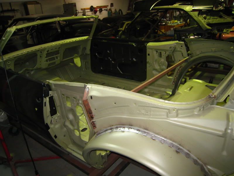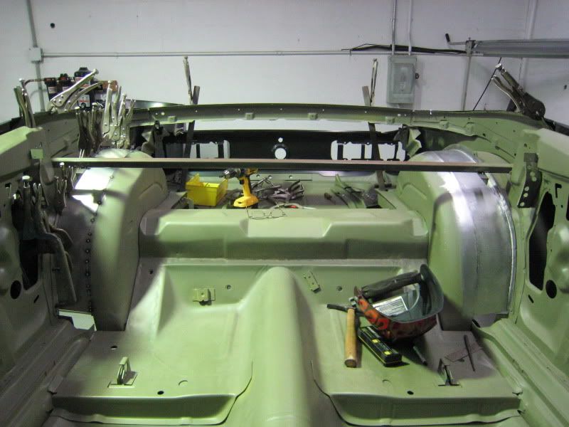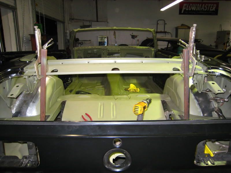 The old rag top is looking GOOD !!! It's good to see Mike's Custom Cars new rear frame rails in the back ... Room for Big Tires !!!! Keep up the good work!!! |