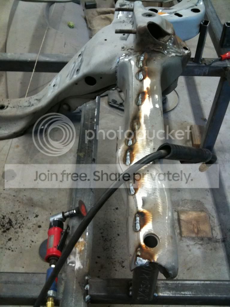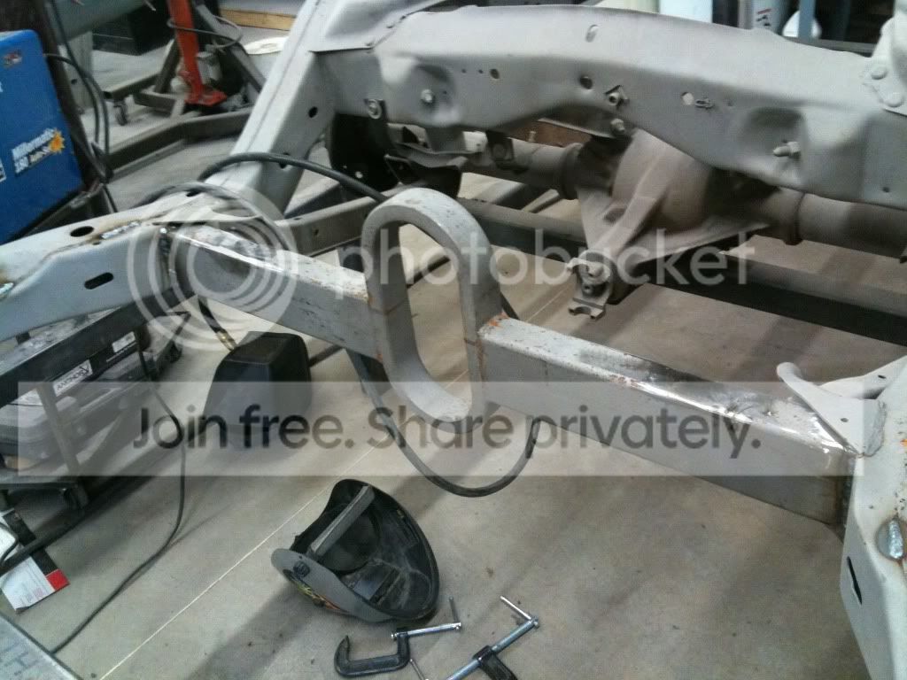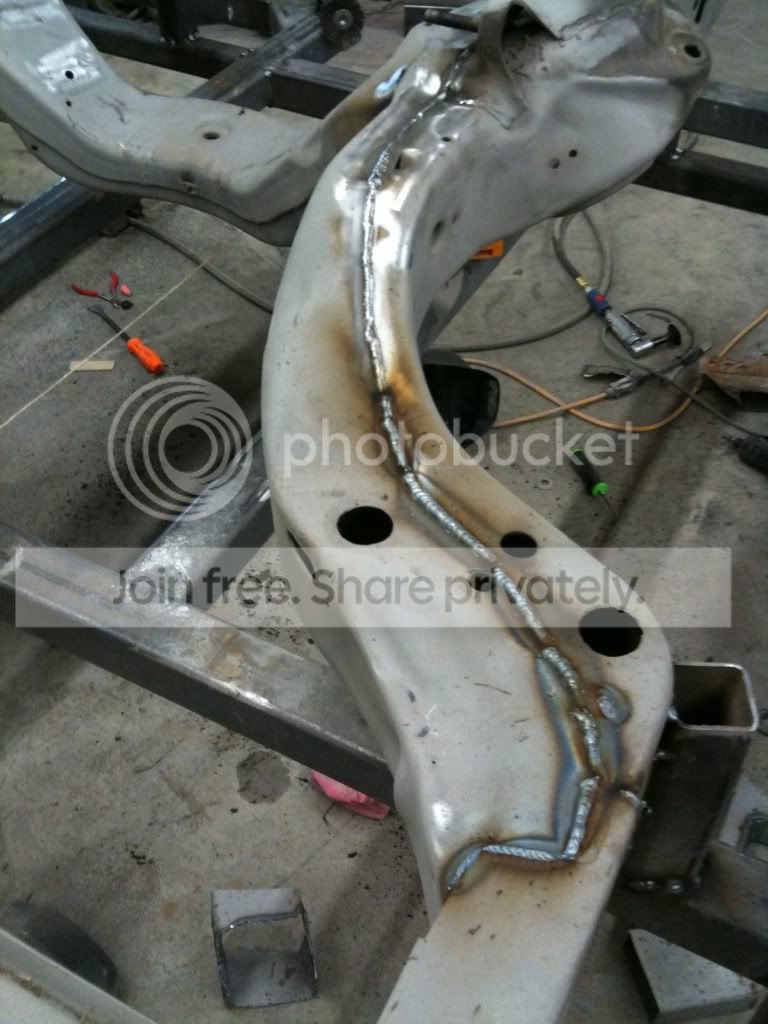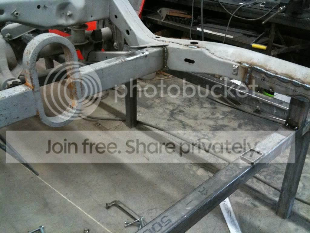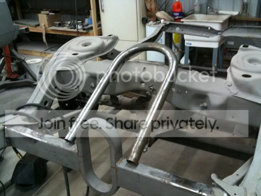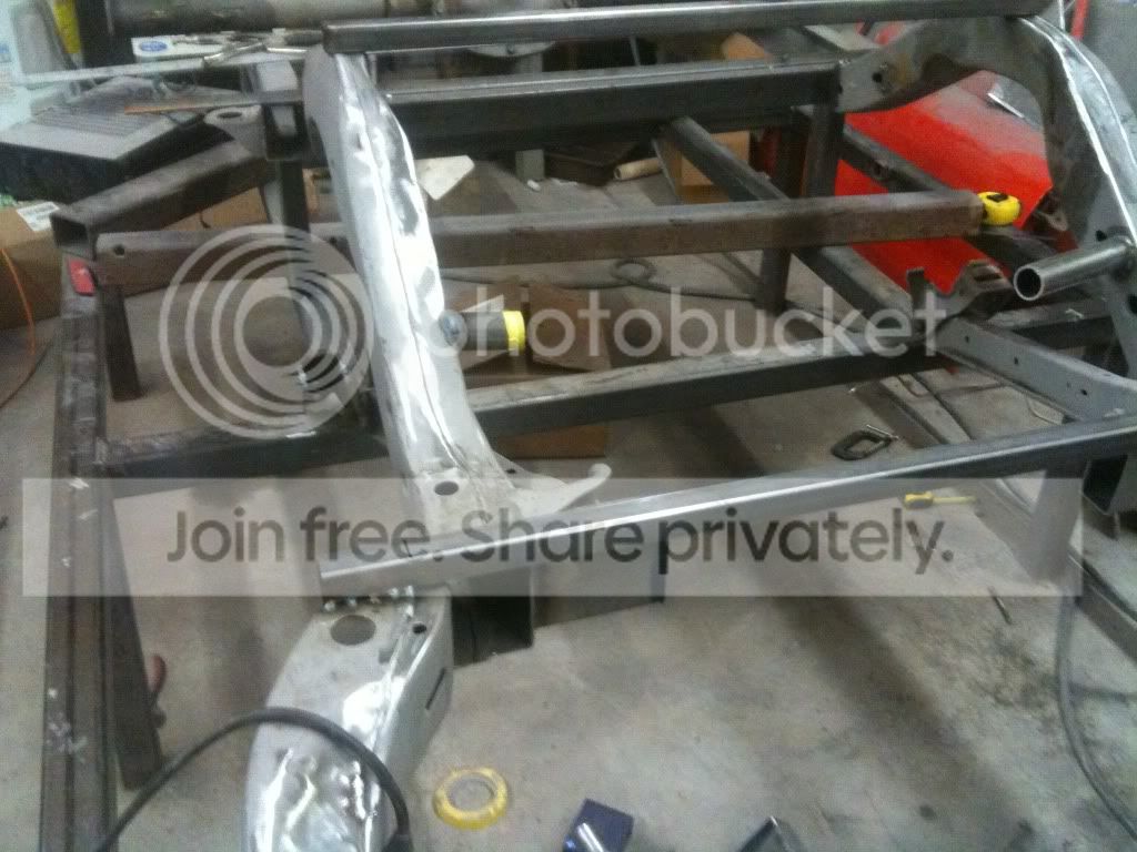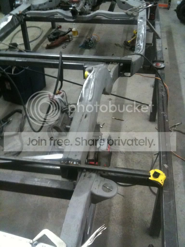 http://i370.photobucket.com/albums/o...e/216597f1.jpg http://i370.photobucket.com/albums/o...e/ab56acc8.jpg http://i370.photobucket.com/albums/o...e/d6bcaa2f.jpg http://i370.photobucket.com/albums/o...e/1fb74572.jpg Then I decided to recycle my old crossmember and driveshaft hoop for the rear http://i370.photobucket.com/albums/o...e/c59a5569.jpg And here it is mocked up. Just need to weld it tomorrow then Ill start boxing the frame. http://i370.photobucket.com/albums/o...e/de6e2fb1.jpg |