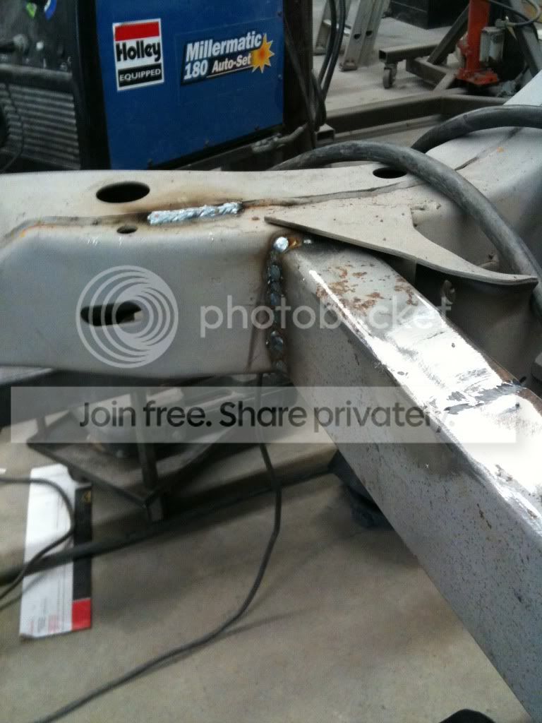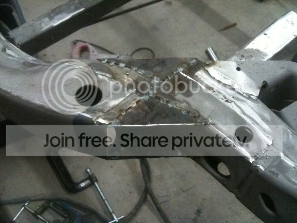A little update.... Got boxing plates fab'd and welded in as well as my recycled crossmember. I also got my tubing bent for my 3 link upper bracket. Now I just need to trim it to fit.