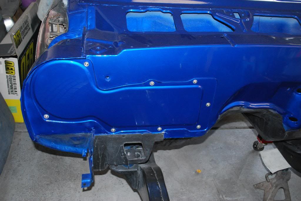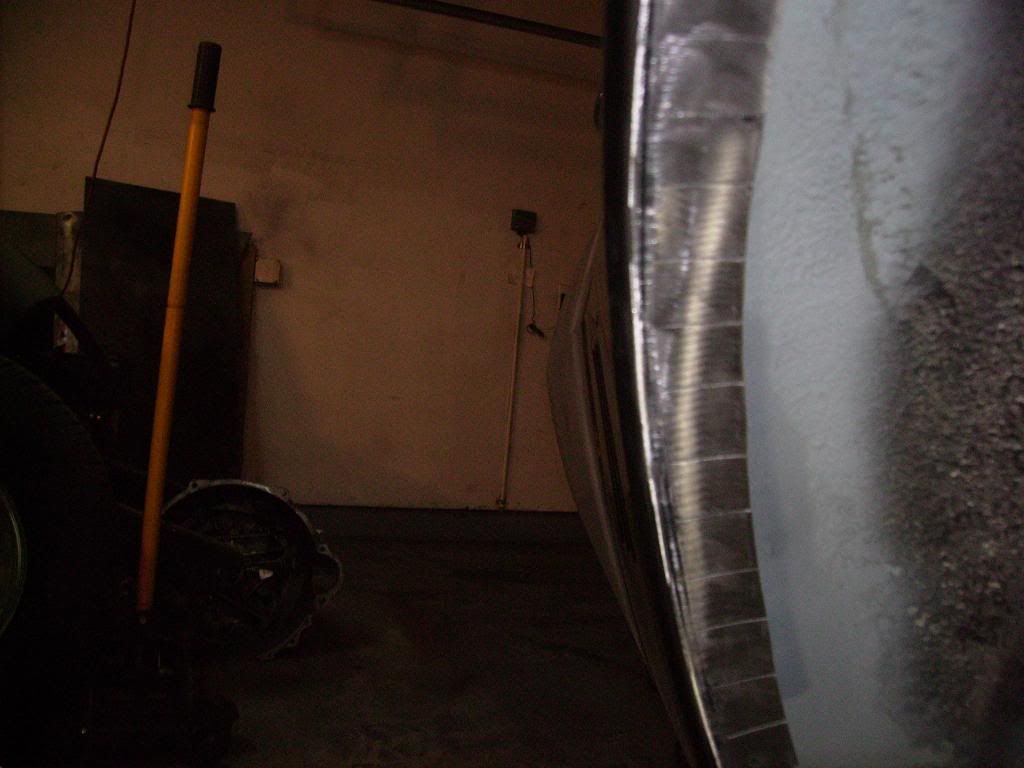 Making a little progress. I decided to cut away the inner edge of the outer wheel houses so that I could cut and tuck the rear quarters in a bit (I did that before I set the quarters on). I'm hoping to stuff some 285's back there. I started by laying down some thin masking tape to mark a straight line. http://i223.photobucket.com/albums/d...d/IMGP1058.jpg Then I cut straight lines with my airsaw every inch or so. http://i223.photobucket.com/albums/d...d/IMGP1060.jpg I was able to bend each section by hand and follow up with just a little hammering to get the edge to sit flat. http://i223.photobucket.com/albums/d...d/IMGP1062.jpg I then spot welded. http://i223.photobucket.com/albums/d...d/IMGP1064.jpg Cleaned up with some sanding discs and sprayed a light coat of Zero Rust. http://i223.photobucket.com/albums/d...d/IMGP1066.jpg http://i223.photobucket.com/albums/d...d/IMGP1070.jpg |