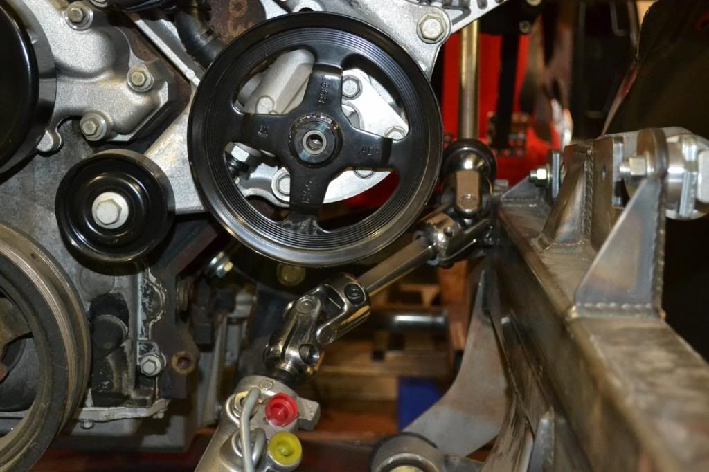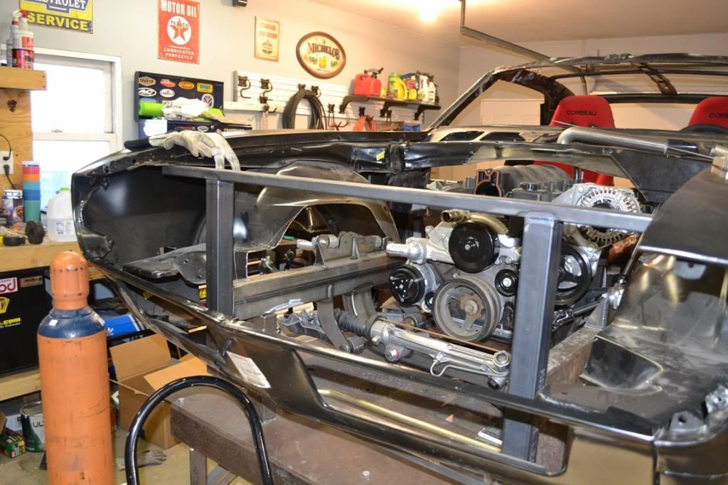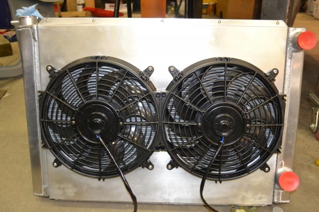 I decided to change the core support and go to a mustang style engine bay with the fixed inner wheel wells. It looks alot better than what GM came up with. Here is the start of it. http://i238.photobucket.com/albums/f...4/DSC_0312.jpg I chose a wider radiator than what a stock Camaro to get more cooling capacity and I had room to widen it. I found some nice 12" fans that fit perfectly behind the radiator. I made a shroud for it instead of trying to buy one. It was alot cheaper and easier to make my own http://i238.photobucket.com/albums/f...4/DSC_0334.jpg http://i238.photobucket.com/albums/f...4/DSC_0333.jpg |