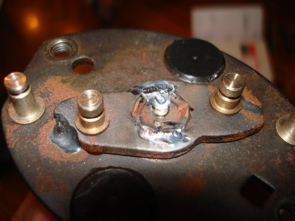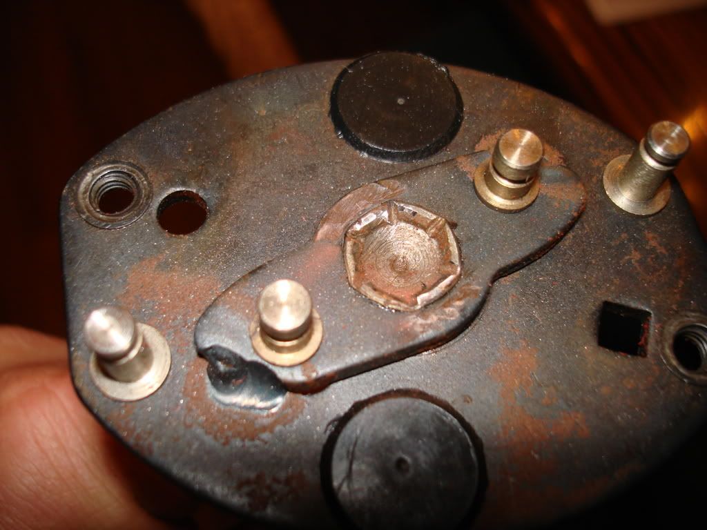I wonder if you couldn't just blow it out (taken out of the car of course) with some compressed air -- and then shoot it with some WD40 -- let that "dry"... it is for water displacement - and does "dry". The WD40 might put a protective barrier on the metal parts (looks like the advance weights are rusted a bit)... toss in a new rotor and a new cap.. and have a happy distributor? I usually drill (do NOT use a twist drill for this - use a "step drill") a small 1/4" hole just behind the #1 stud in the cap. This "vent" does a couple of things - it lets you check with a timing light on the top of the cap... shows you exactly where the rotor is in relation to the "timing" (rotor firing on #1) so you can "phase" your rotor (if your distributor allows that - it should for EFI)... and it also gives an exit to vent the "static" out of the cap. This "static" is why they went to the bigger cap - ala the GM HEI style... There's another name for the static - but damned if I can think of it right now. MSD even sells a "vented" cap for "performance" applications. |